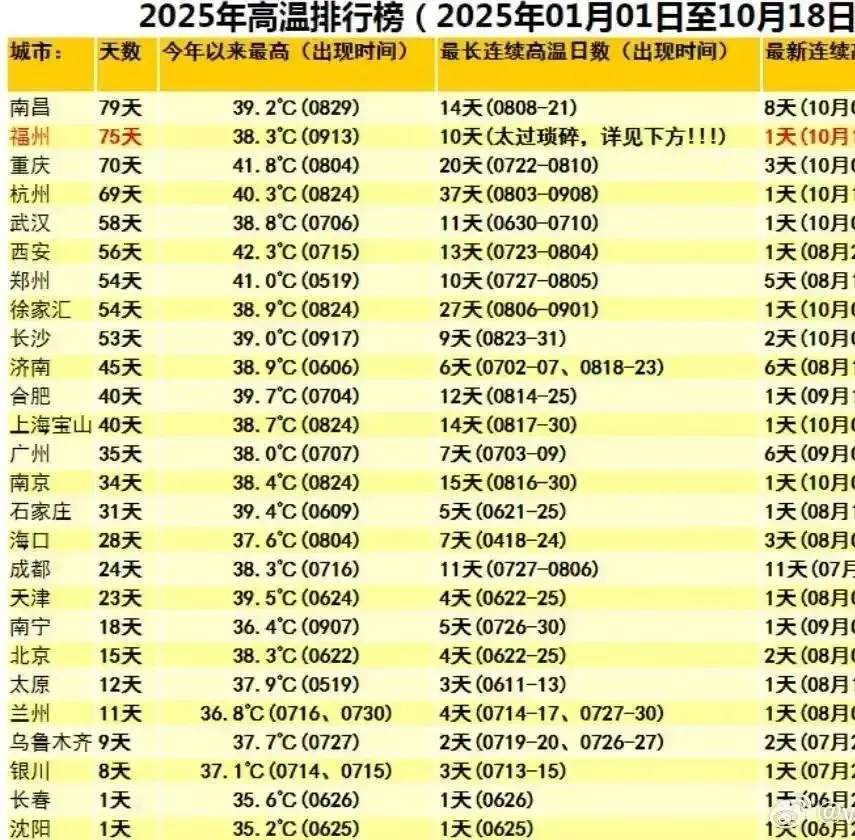 ▲2025年35度以上高温日排名,南宁只有18天