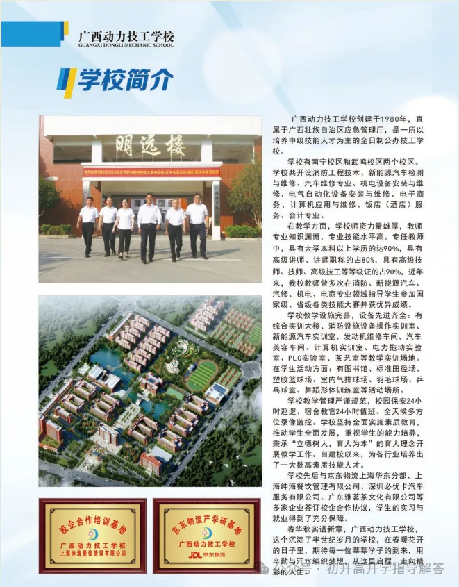 2、广西机电工业学校,公办四星级学校,位于南宁市东葛路(地铁到校)3、广西第一工业学校,公办四星级学校,位于南宁市兴宁区长堽路(地铁到校)
