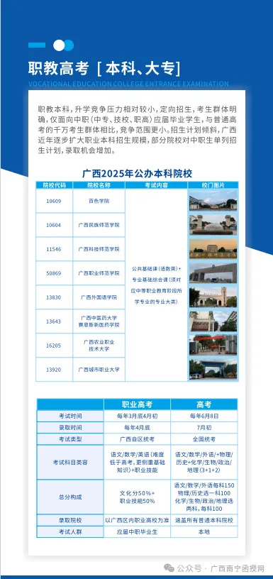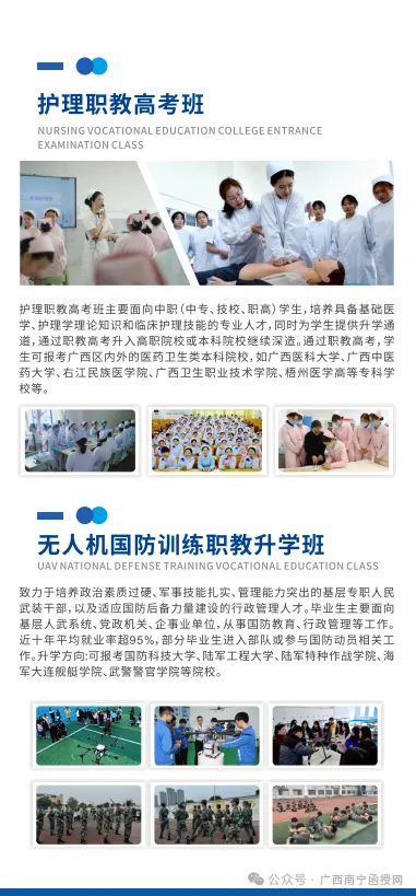 中考出成绩前不看分数,中考出成绩后从高到低录取,择优录取,录满截止,故每年的分数要求不一样,所以家长要提前给孩子预定名额。考不上高中的孩子可以添加下方老师微信或发送问题,老师将第一时间为你解答 广西公办中专报名时间报名时间:2026年1月—8月招生电话:191 7771 8919 / 189 0777 3301 周老师广西公办中专录取时间录取时间:中考成绩公布起至录满为止报名方法:请提前联系老师报名或到校现场报名可添加老师微信咨询报名:03招生名额:每个专业名额有限,招满为止,请尽早报名。05联系方式:联系电话:19177718919(微信同号)06广西区中职院校:南宁市第一职业技术学校、南宁市第四职业技术学校、南宁市第六职业技术学校、南宁市第三职业技术学校、南宁市卫生学校、广西机电工程学校、广西机电工业学校、广西第一工业学校、广西工商学校、广西广播电视学校、广西工贸职业技术学校、广西纺织工业学校、广西邮电技工学校、广西轻工技师学院、广西商贸技师学院、广西物资学校、广西动力技工学校等等(声明:以上内容贵在分享,版权归原作者及原出处所有,分享为公益,未用于营利,如涉及版权等问题,请及时与我们联系,我们会第一时间进行处理。)