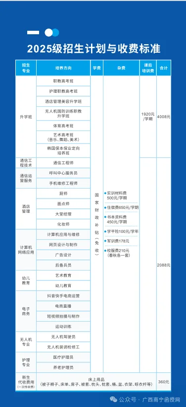 广西邮电技工学校是公办学校,所有专业均免学费,只需缴纳杂费。以下是 2026 年收费明细: