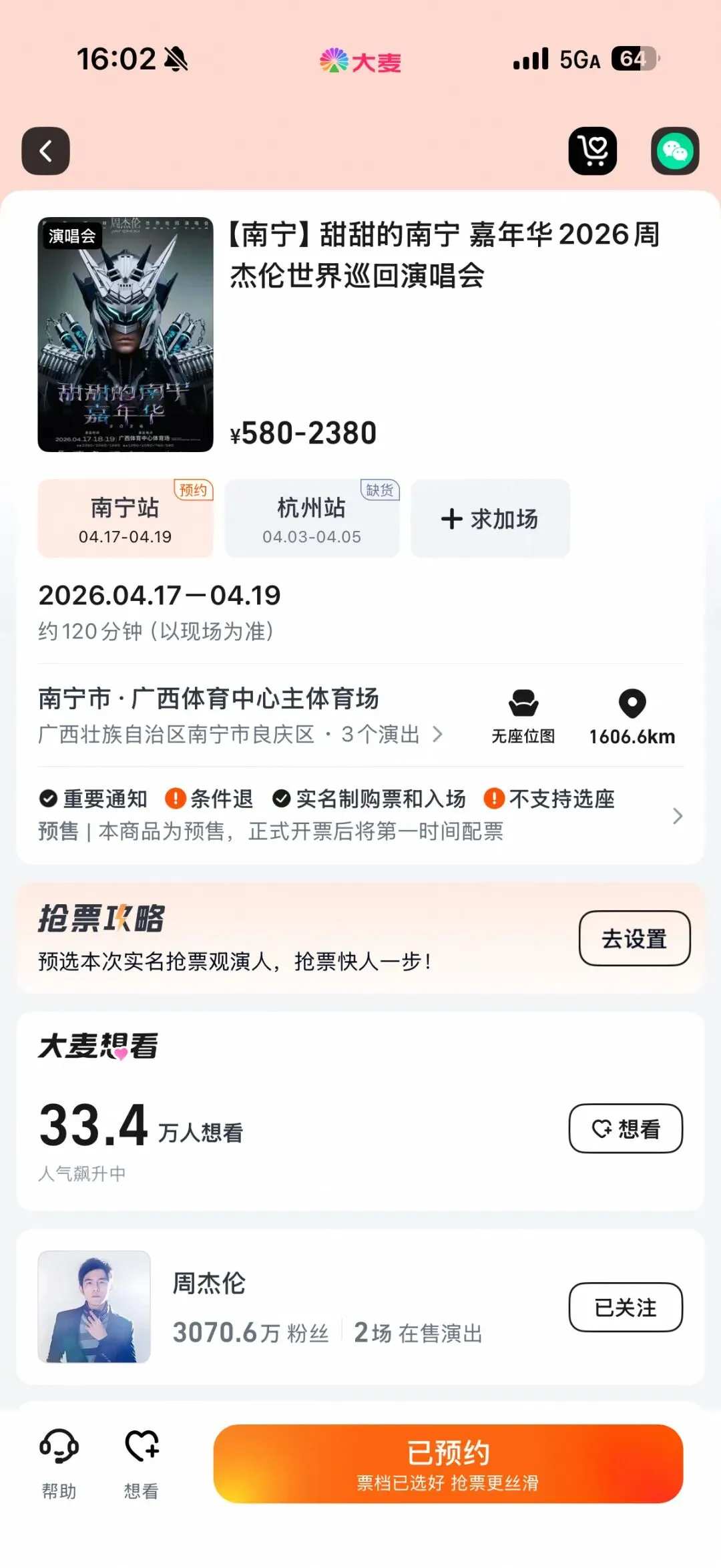@所有人 周杰伦「甜甜的」南宁演唱会,开启预约抢票!