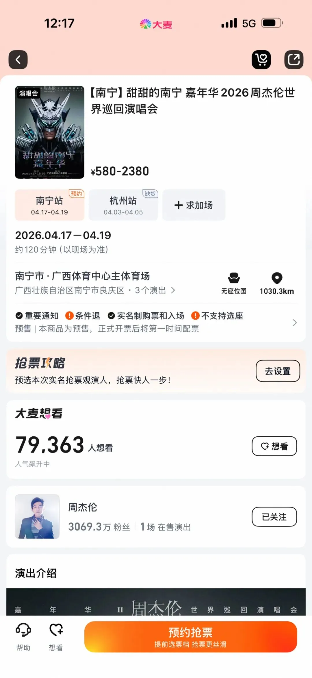 周杰伦南宁站正式上架,即将开售~杭州站还有二开及进场机会!2026年巡演各站限定主题+延伸台+新歌单+新舞美,不容错过!附演唱会购票攻略