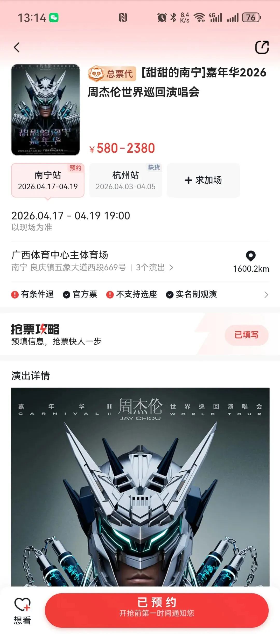 终于等到你!周杰伦2026南宁演唱会已官宣预约抢票!