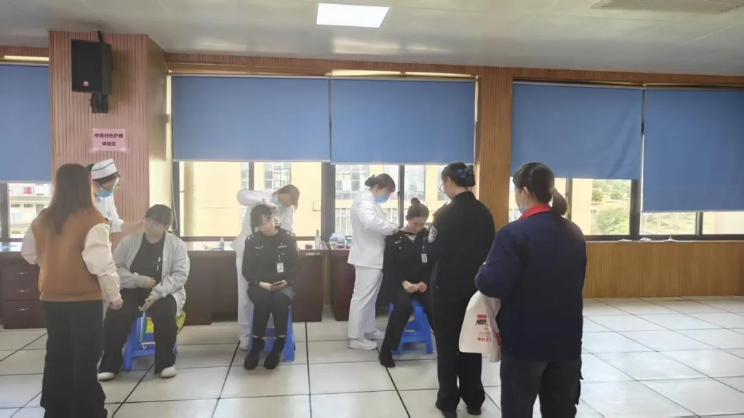 中医保健,特色守护。中西医结合科黄秋菊副护士长带来中医保健知识分享,并带领护理团队为现场女职工提供中医特色护理体验,专业的服务、舒适的体验赢得大家一致好评