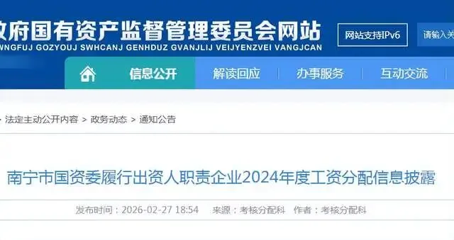 2026年2月27日,南宁市国资委对履行出资人职责的7家市属国企,企业员工薪酬信息进行了统一披露。