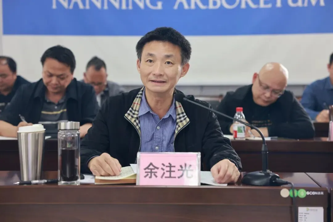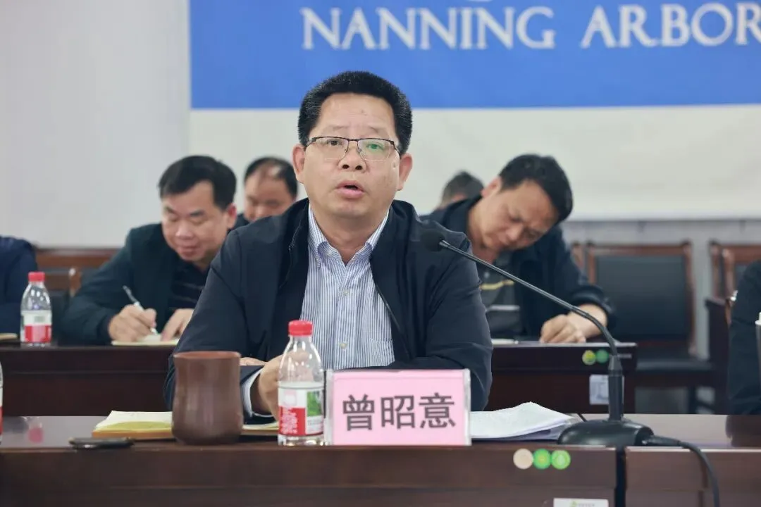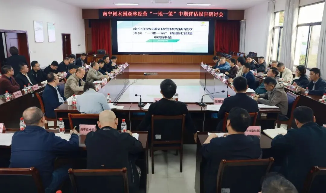 2026年3月6日上午,南宁树木园在珍贵树种研发中心501会议室召开森林经营“一地一策”中期评估报告研讨会。广西大学林学院副院长杨梅作报告,南宁树木园主任余注光作总结讲话,副主任曾昭意主持会议。