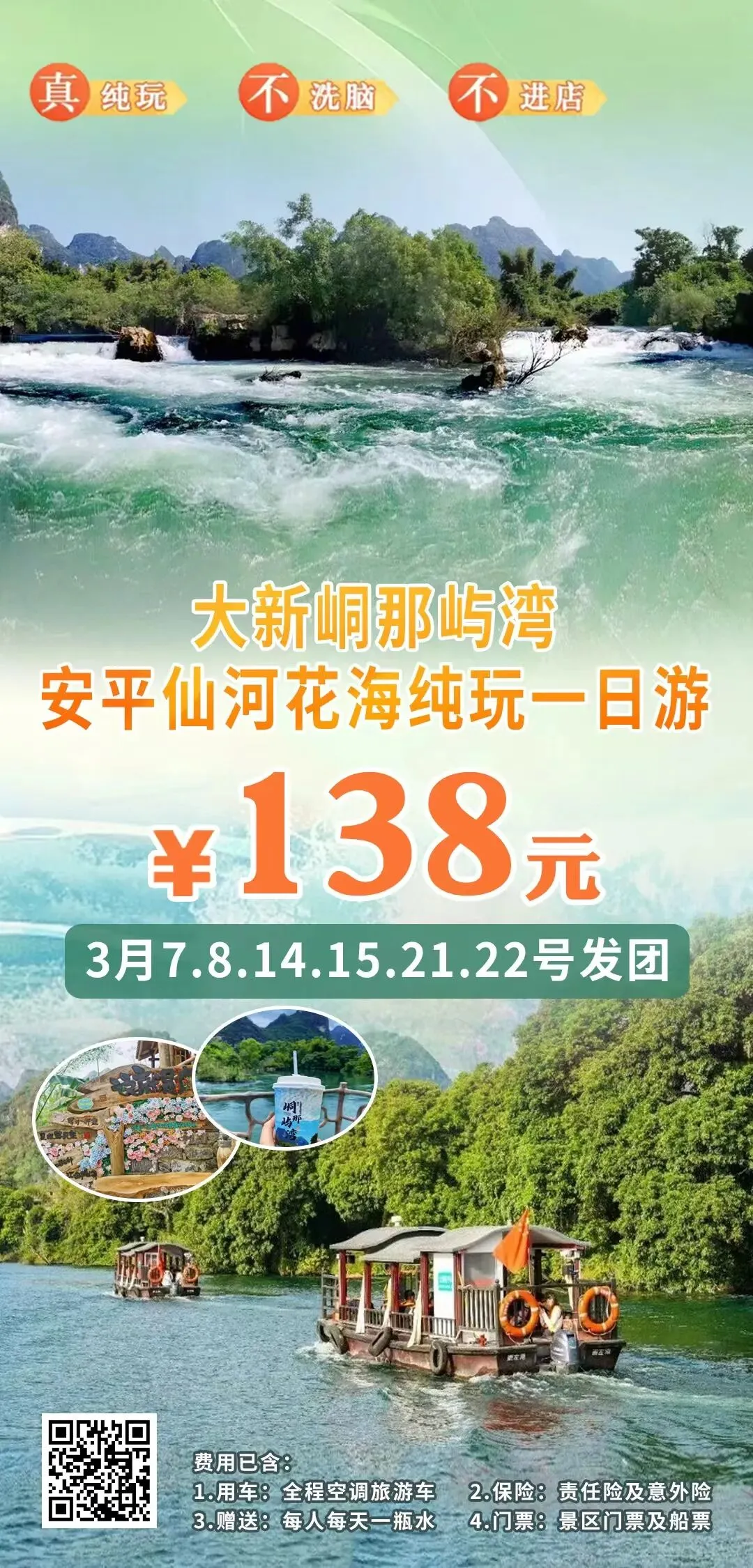 1、3月8号【成团铁发】大新峒那屿湾安平仙河花海纯玩1日游138元
