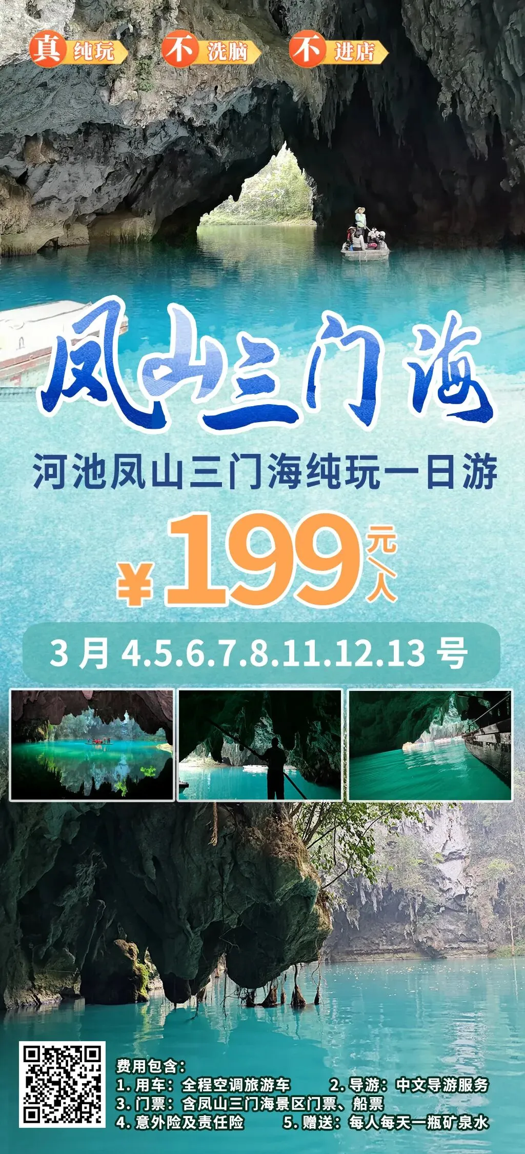 3、3月8号【成团铁发】河池凤山三门海纯玩1日游199元