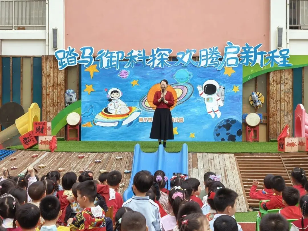 大班幼儿舞蹈《小马欢腾御科探》展现蓬勃朝气;小、中班教师带来趣味魔术、科学实验依次亮相,精彩纷呈。园长妈妈希望孩子们在新学期里,怀揣好奇之心、勇于探索、成为健康快乐的“小马驹”。