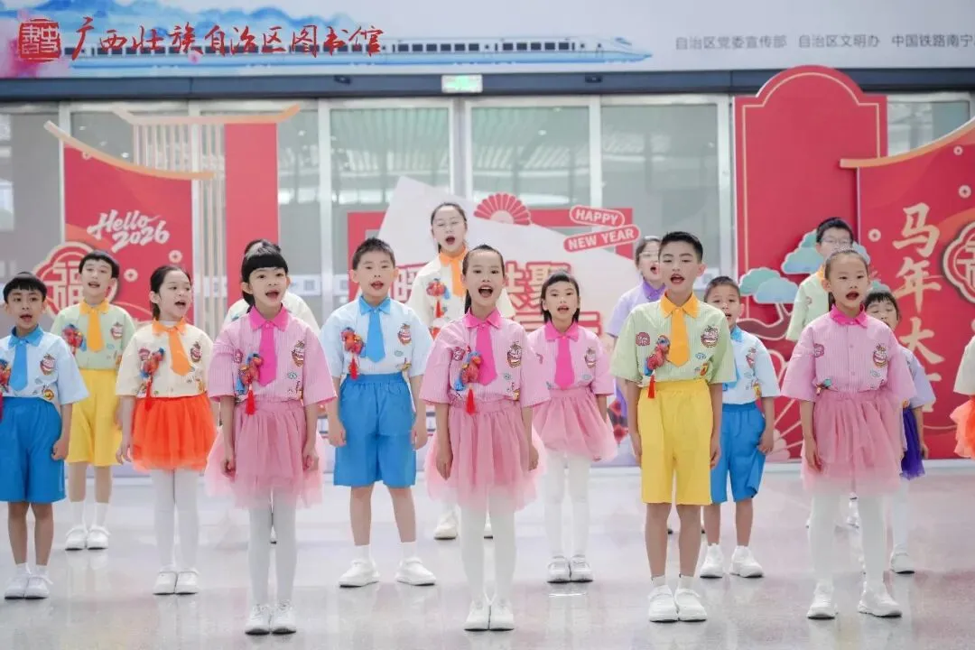 当匆匆赶路的脚步遇见清澈童声,当喧嚣车站邂逅治愈旋律,一场惊喜满满的音乐快闪在南宁东站温情上演!咱们春天童声团的小天使们,受邀参与自治区图书馆主办的快闪活动,用干净纯粹的童声,为往来旅客送上了一份独属于春日的温柔惊喜。