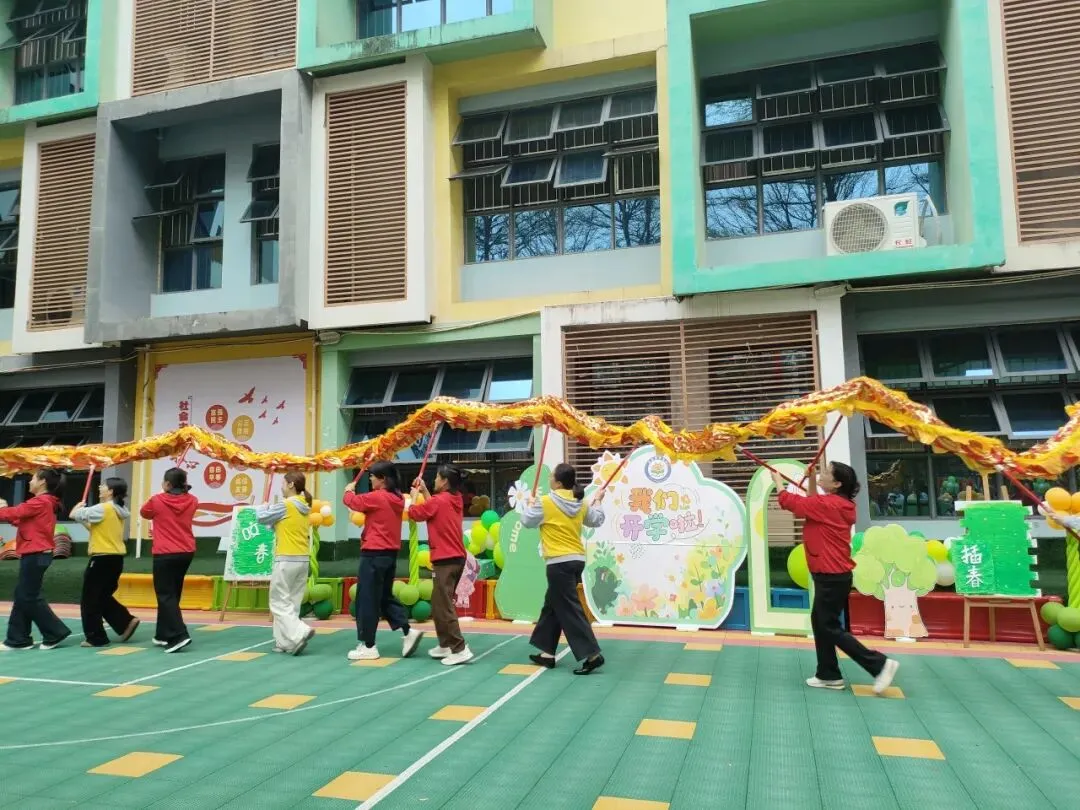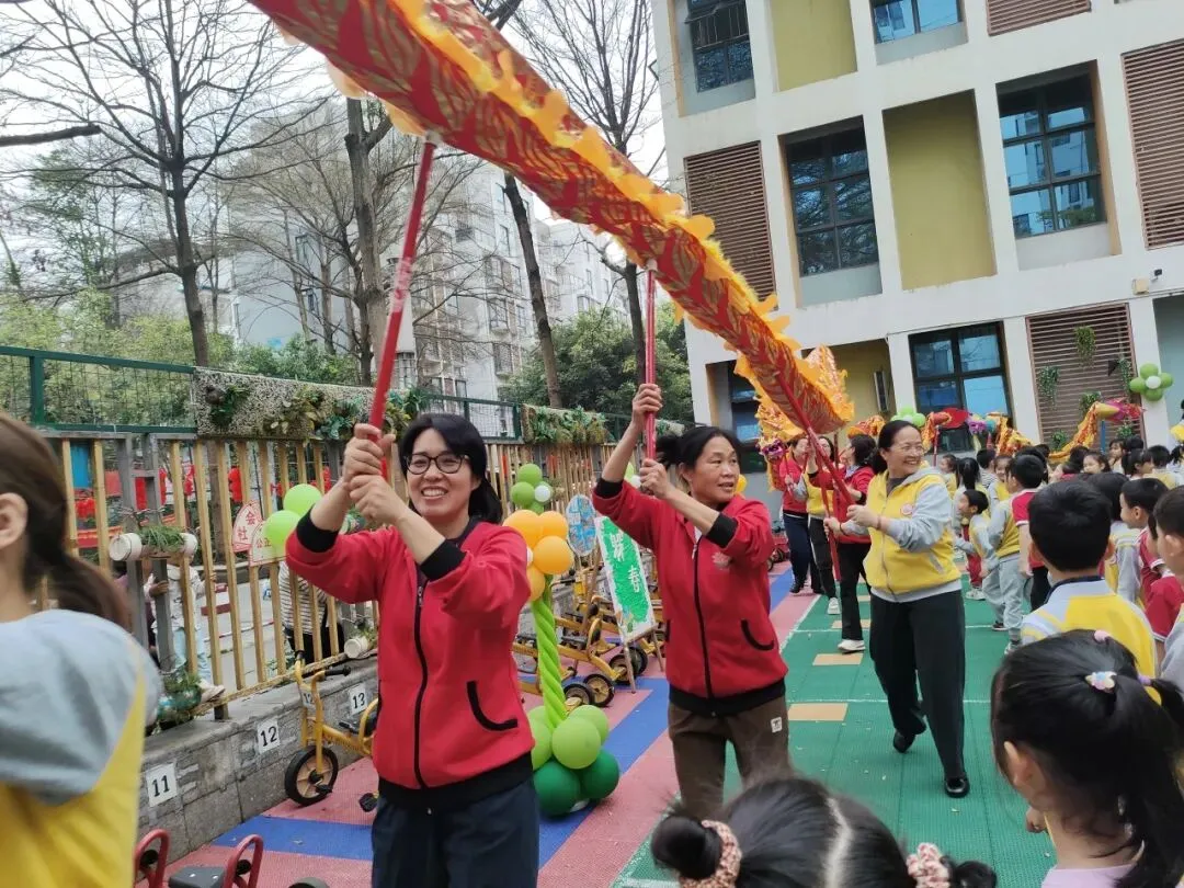 为了让孩子们感受传统文化的魅力,幼儿园特别准备了舞龙表演。老师们和孩子们一起舞动着色彩鲜艳的长龙,穿梭在校园的各个角落。金龙翻腾,寓意着新的一年龙腾虎跃、生机勃勃,也为新学期讨个好彩头。
