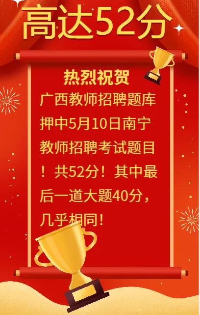 【重大喜讯】2025年南宁教师招聘考试!押中考试题目原题!总分达52分!40分大题相同!简答题1题相同!案例题类似!