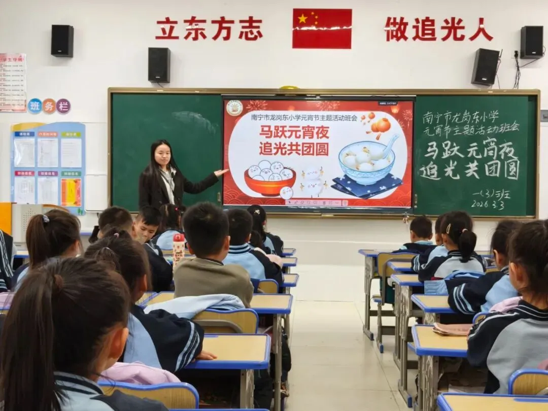 元宵佳节至,追光正当时。3月2日,南宁市龙岗东小学以“马跃元宵夜 追光共团圆”为主题,开展元宵节系列活动。全体师生欢聚校园,在传统与现代交融的氛围中,共赴一场温暖而有力量的团圆之约。