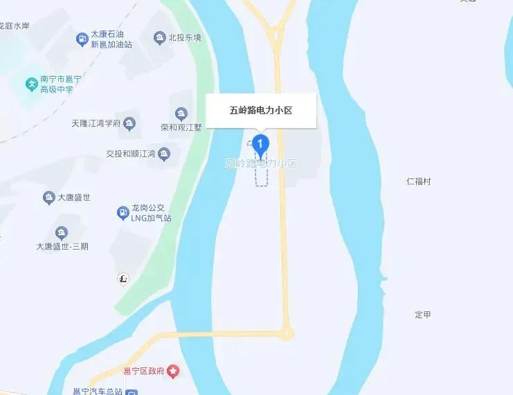 此次拍卖的这栋私人楼房,在南宁市,地段非常特别,位于南宁市仙葫半岛上,算是一线江景房了,位于南宁市青秀区五岭路2-100号,所在小区叫做五岭路电力小区。从位置来看,房子地段目前确实比较一般,以后会不会变优质地段就不好说了,毕竟是邕江半岛地段。目前仙葫半岛周边配套一般般,就一个南宁市第一人民医院(青秀分院),然后主要就是居住小区了,而且仙葫半岛是一个狭长的半岛,交通不算方便,主干道就一条仙葫大道而已。