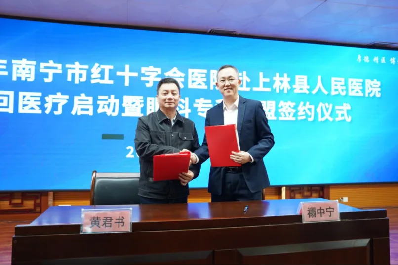 仪式现场,上林县卫健局、上林县人民医院及市红十字会医院相关负责人先后致辞,均表达了深化医疗协作、推动优质资源下沉的共同愿景。双方医院签署了眼科专科联盟协议,标志着两院建立长期紧密的医疗协作关系。