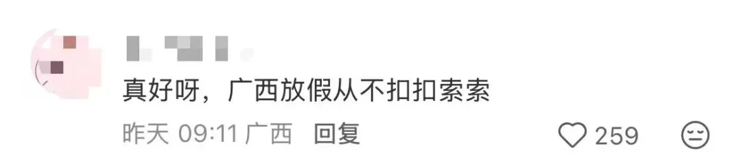 这一发现,让本来就羡慕三月三假期的外地朋友,更加“羡慕嫉妒恨”,更有网友建议全国推广。(来源:嗨南宁综合网友评论)