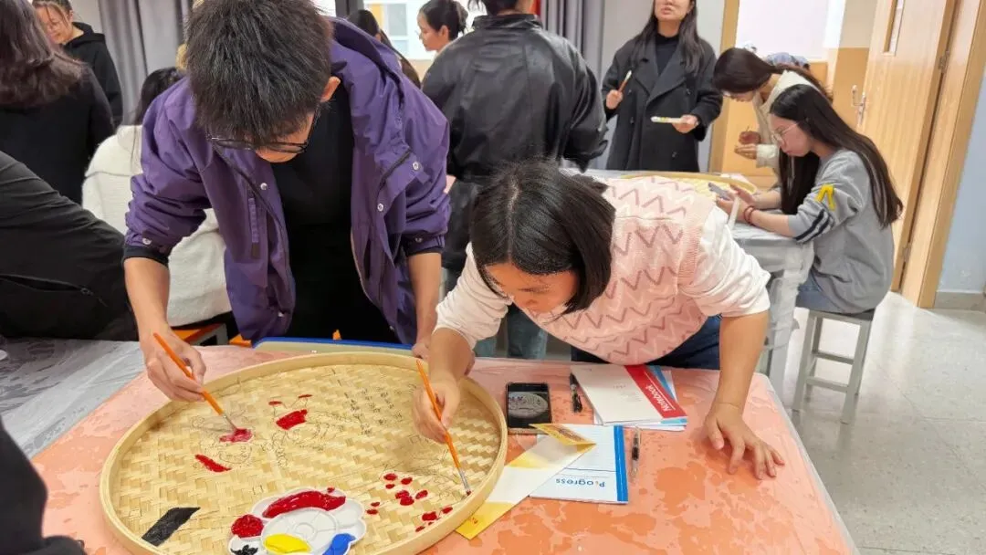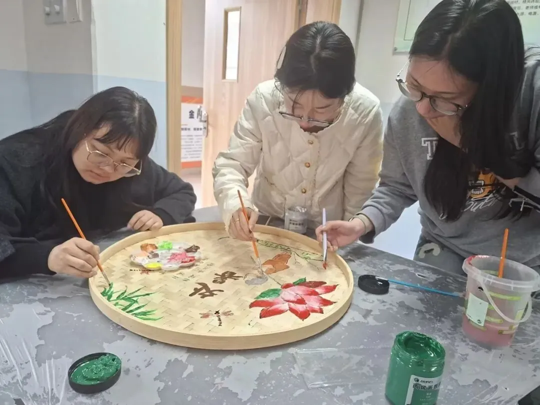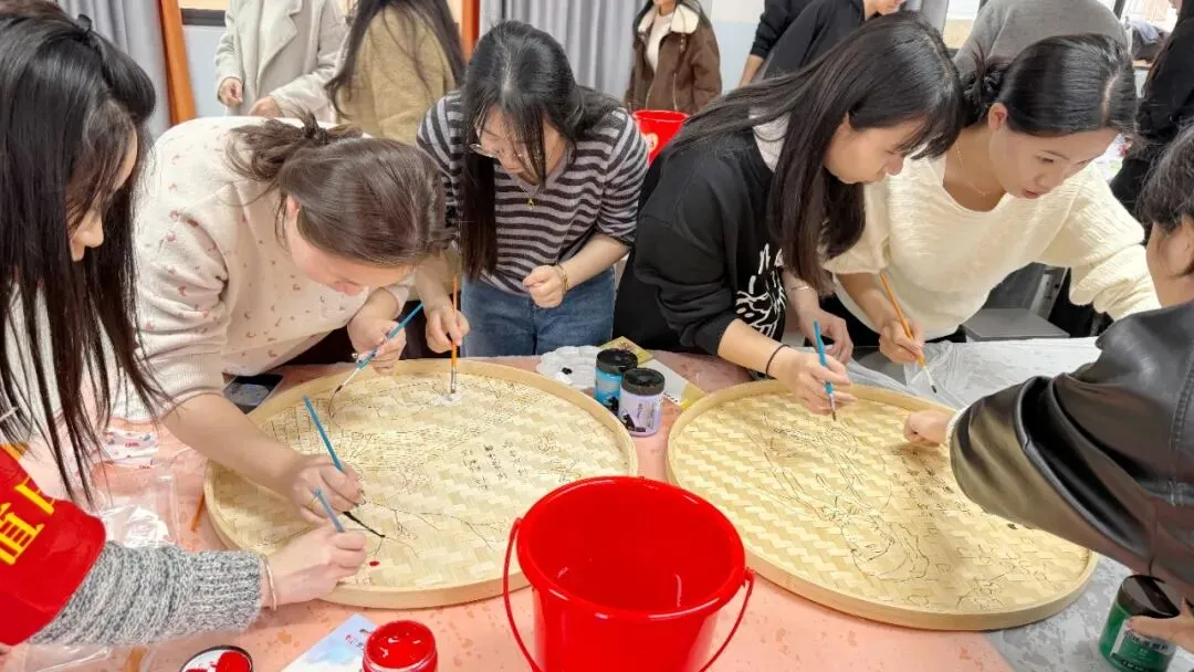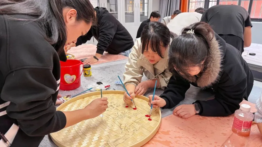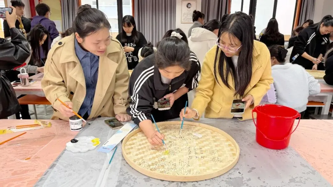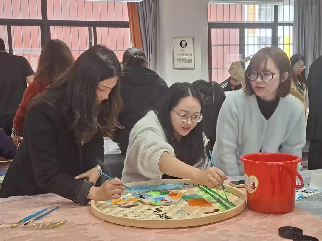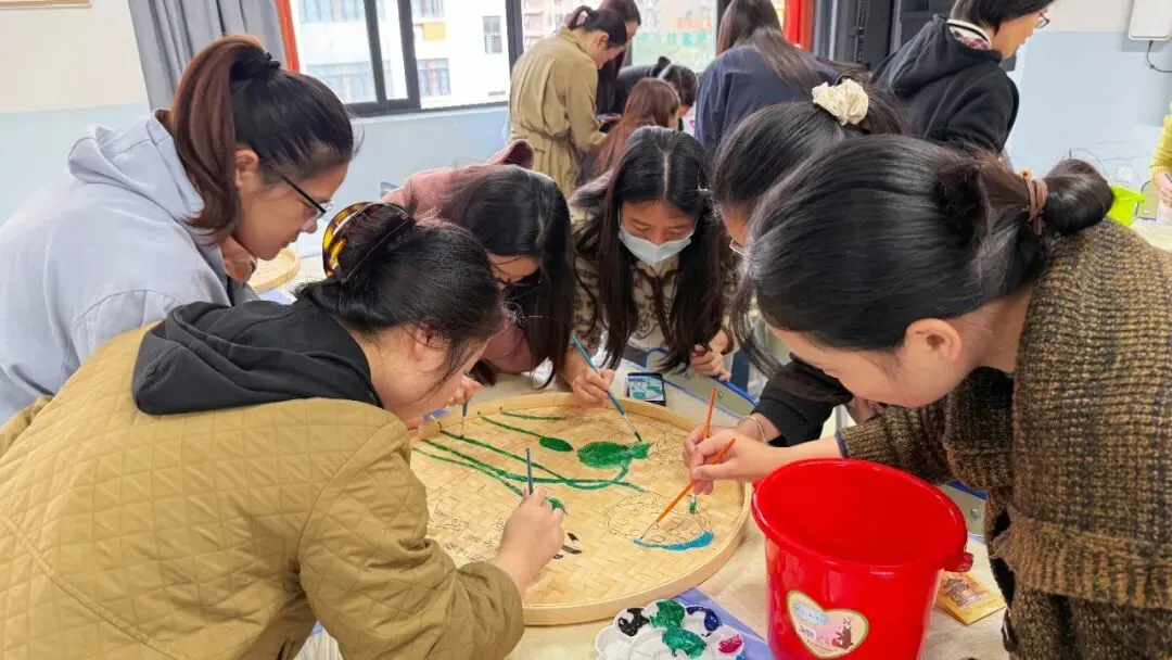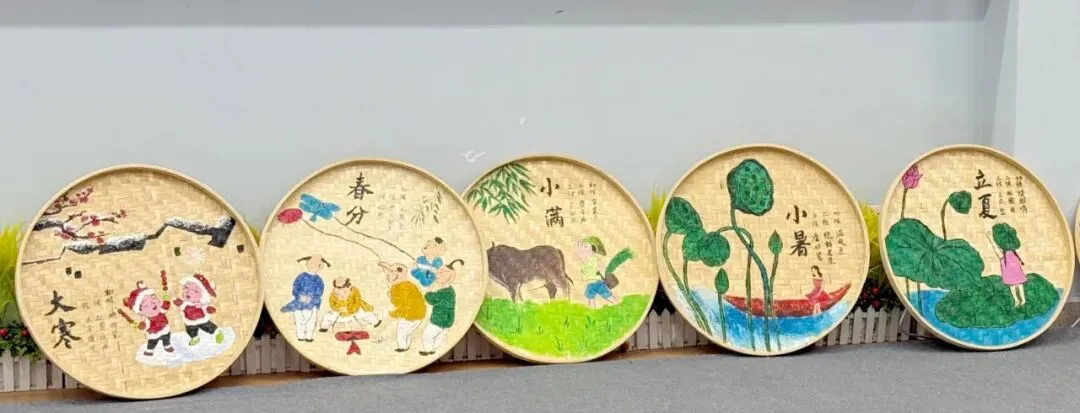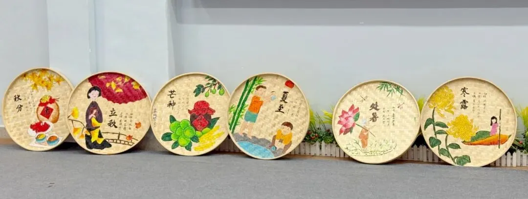 活动中,星灿教师们用画笔在竹编上精心描绘,将二十四节气的自然之美、生活中的温馨瞬间,一一呈现在古朴的竹编之上。原本朴素的竹编簸箕,在大家的巧手下,变成了一件件色彩斑斓、充满生命力的艺术品。