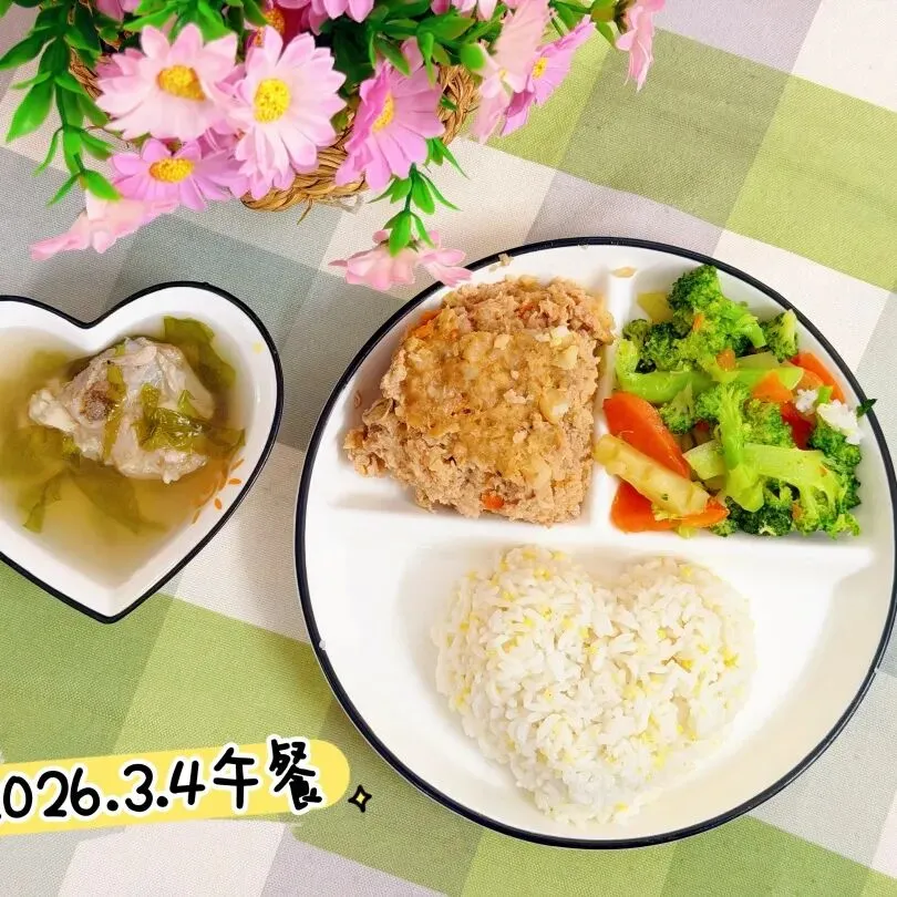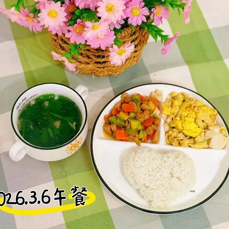 清炒油麦菜 裙带菜肉丸汤