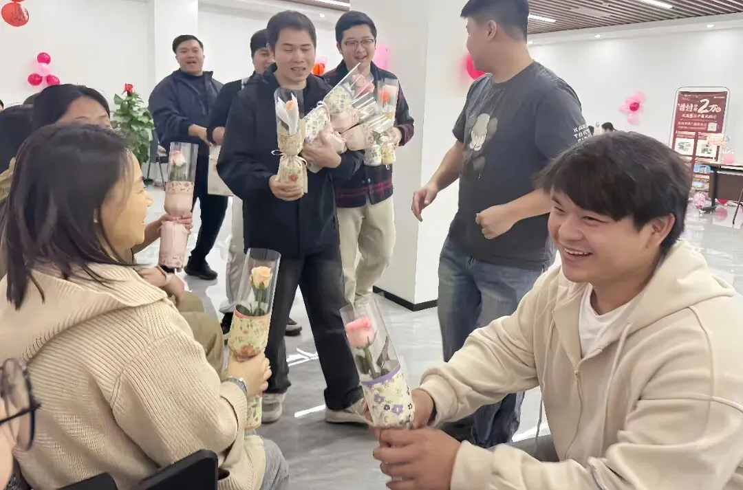 为庆祝“三八”国际劳动妇女节,充分展现新时代女性风采,营造温馨和谐的节日氛围,3月6日中午,南宁城市更新发展集团机关工会联合西部公司工会,精心举办“更新筑美居·致敬她力量”三八国际劳动妇女节主题活动。活动伊始,男职工代表手持精心准备的小花束,为每一位女职工送上节日的祝福与敬意。一束束娇艳的鲜花,瞬间拉近了彼此的距离,也让现场氛围变得格外温馨。
