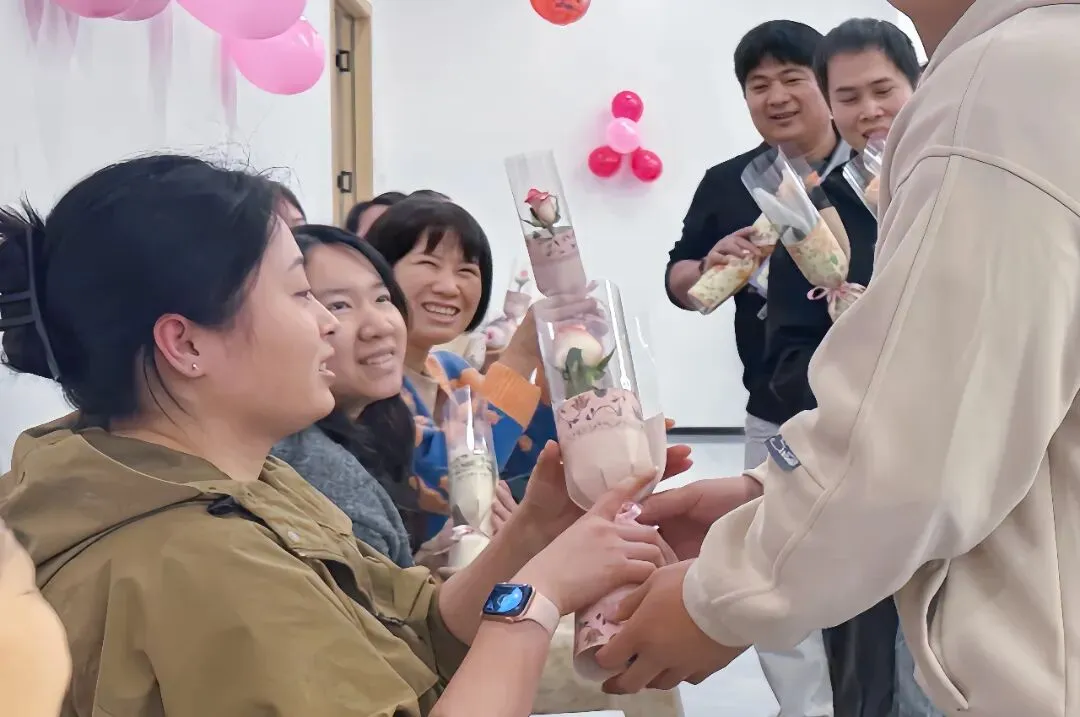 每一位女职工的脸上都洋溢着幸福的笑容,如繁花般绚烂绽放。