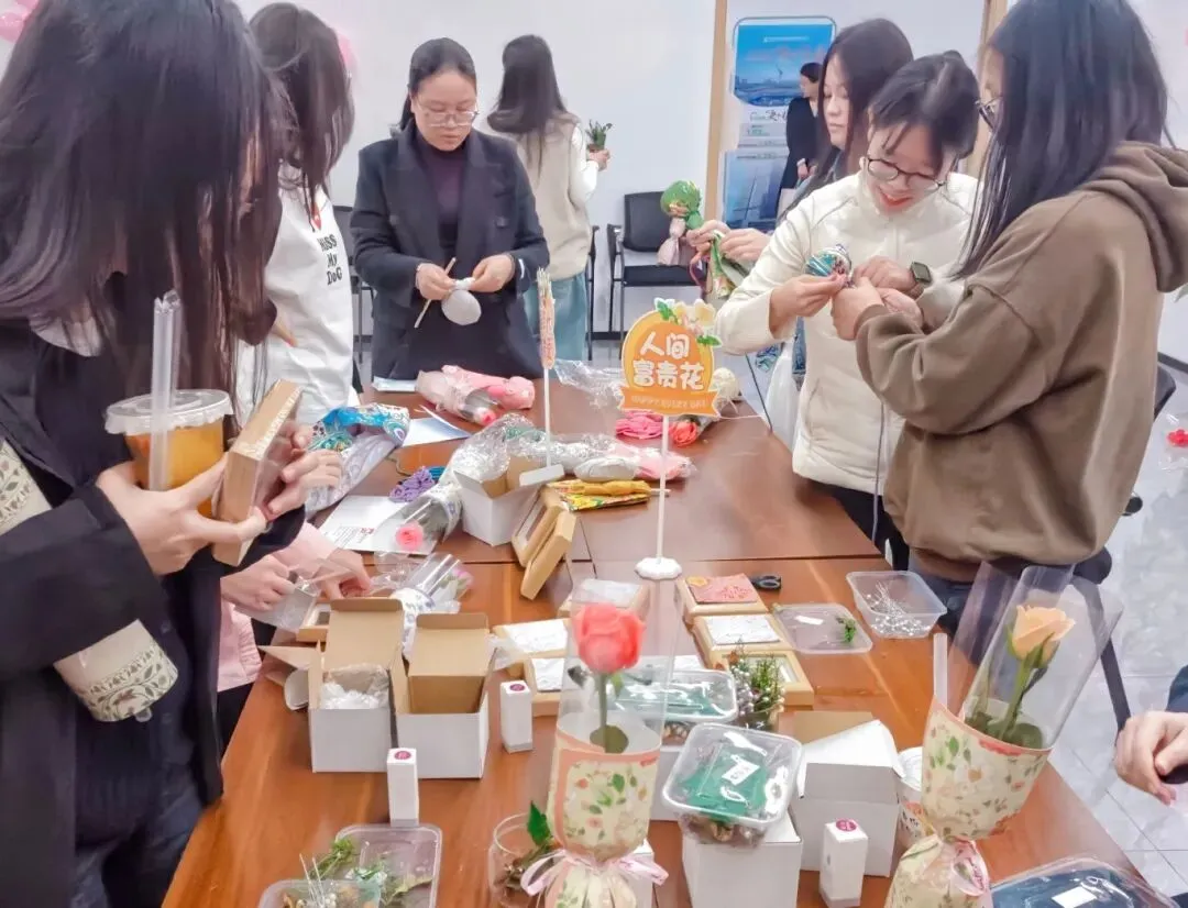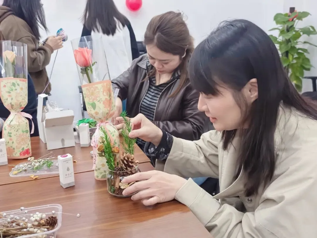 现场精心准备了丰富多样的糕点甜品,颜值与口感双在线。女职工们纷纷品尝甜蜜滋味,分享喜悦,在欢声笑语中,共享这惬意又美好的节日时光。活动现场备好齐全的手工材料,专业老师现场指导,无论是雅致的干花摆件,还是精致的传统饰品,每一款手工制品都藏着专属浪漫。