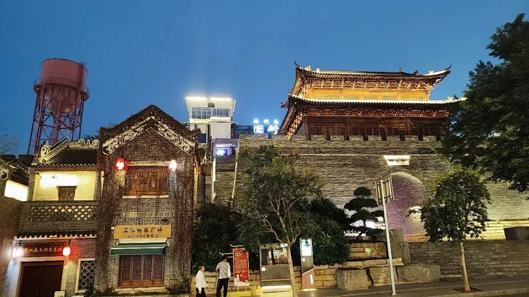 一旁复建的仓西门,重现了宋代城门的风采,千年古城与民国水塔交相辉映,历史在此交汇。白天,这里是市民休闲、游客打卡的好去处;夜晚灯光亮起,水塔更显沉稳,静静守望车水马龙、人间烟火。