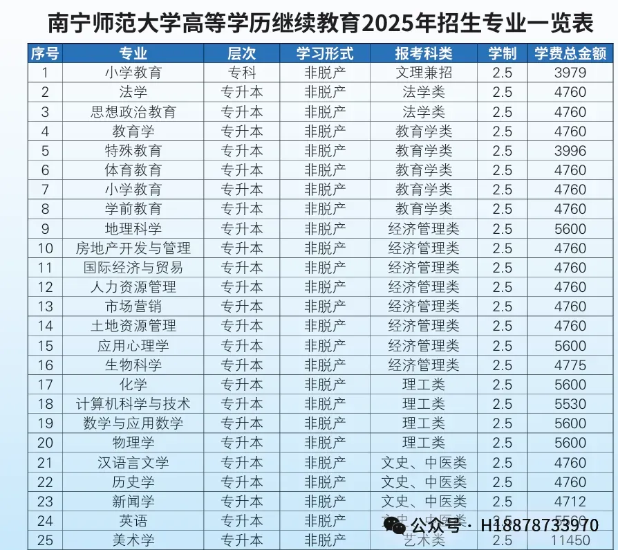 高起本(5年):法学、行政管理、会计学、汉语言文学、电气工程及其自动化、土木工程、计算机科学与技术学校所采用的是线上线下相结合教学:线上学习平台+现场听课与同步直播。学习工作两不误,欢迎大家报读南宁师范大学