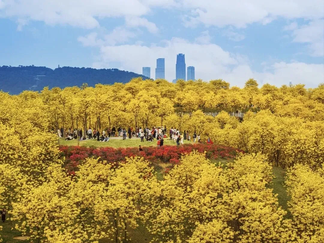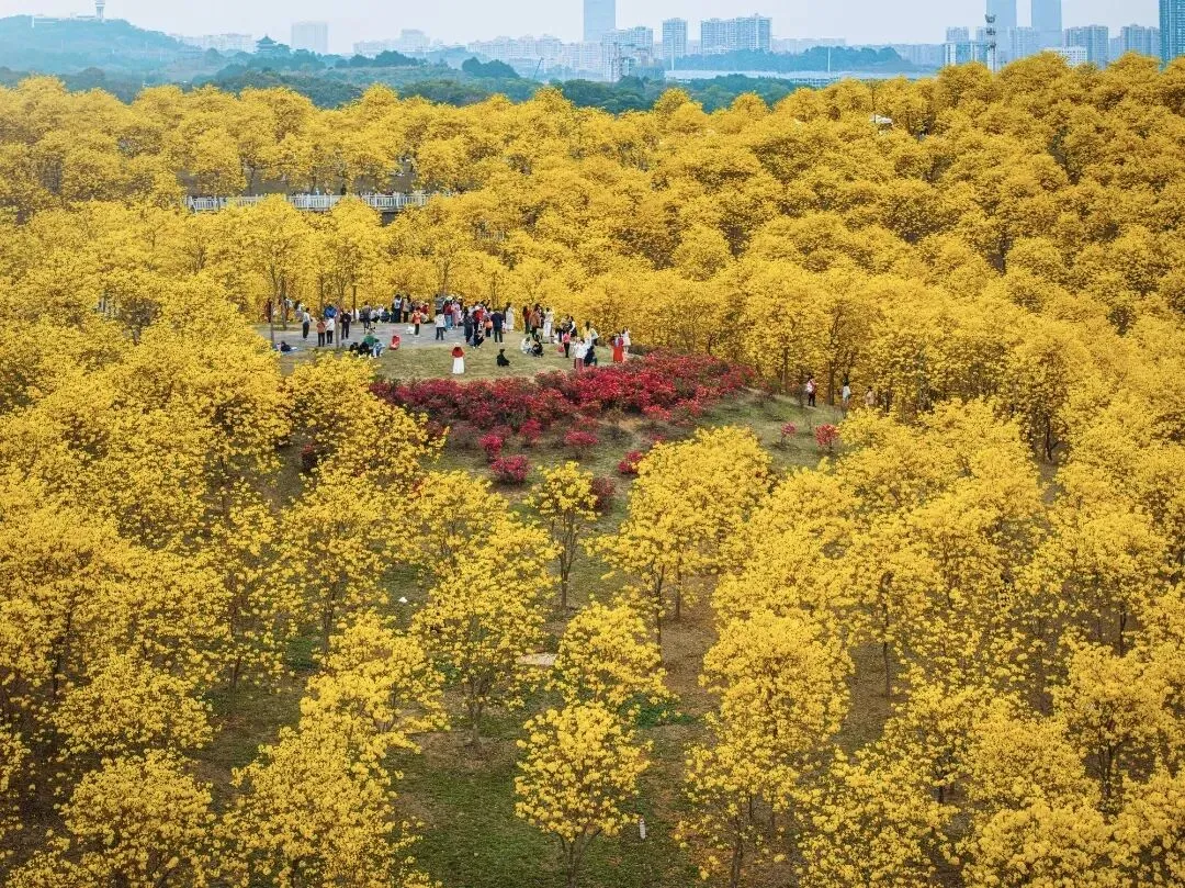 再加上2026年3月4日,央视《新闻直播间》对青秀山黄花风铃木盛景进行了4分55秒直播报道,向全国展示这片金色花海与绿城春日风光。