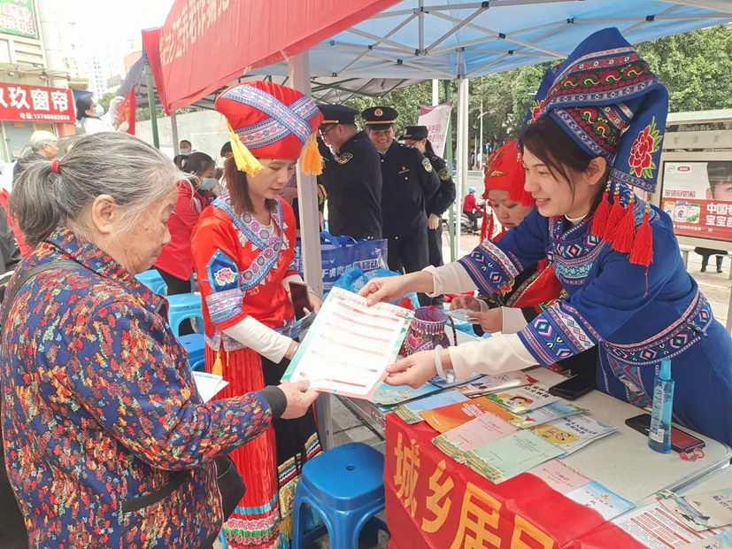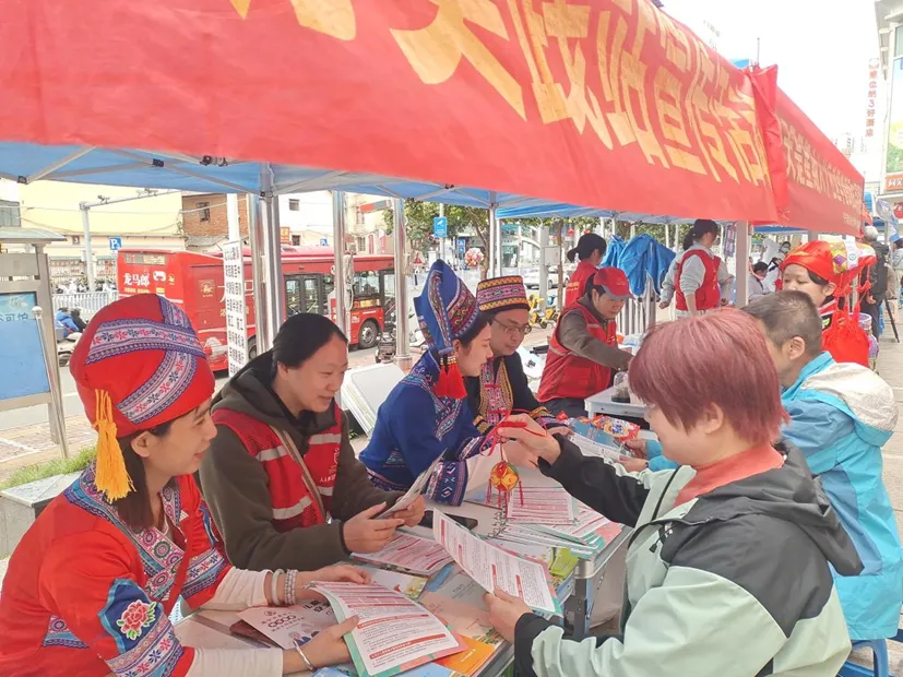 民族文化宣传区则独具特色,身穿民族服饰的志愿者们通过现场讲解民俗文化、宣传民族政策法规等形式,增进居民对民族文化的了解与认同;还向居民普及环境保护、垃圾分类等相关知识,着力提升居民文明素养。
