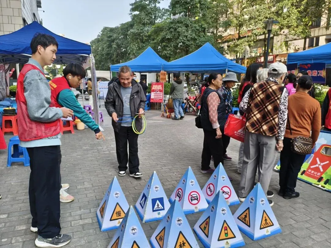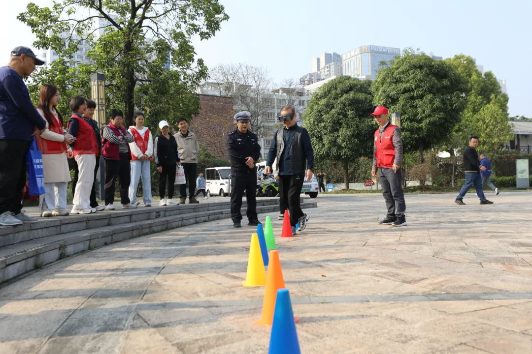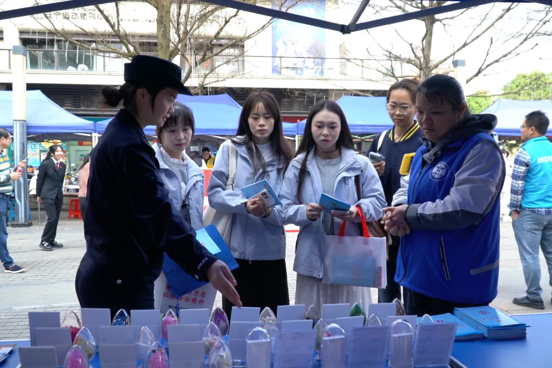 在“守交规、防诈骗、拒毒品”安全体验区,设置了交通安全体验、反诈宣传、禁毒教育三大主题互动区域。交通安全体验区里,志愿者正通过头盔保护演示、酒驾模拟体验等方式,向群众普及安全出行知识;反诈宣传区则通过有奖问答、典型案例讲解,吸引了不少群众驻足参与;禁毒宣传教育专区通过实物展示、危害讲解与互动问答等方式,普及毒品防范知识,进一步提升公众的安全防范意识与能力。
