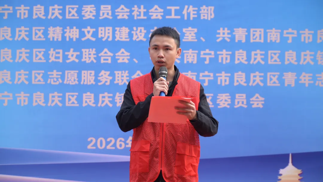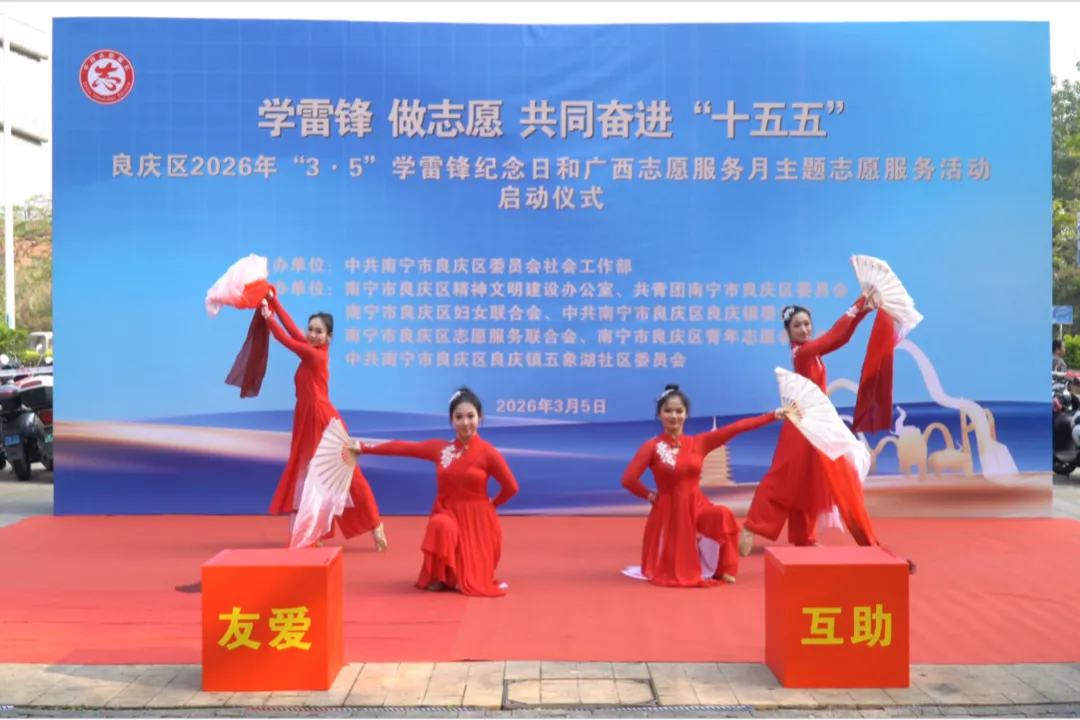 3月5日,良庆区举办2026年"3·5"学雷锋纪念日暨广西志愿服务月主题志愿服务活动启动仪式。活动以"学雷锋 做志愿 共同奋进'十五五'"为主题,号召广大市民以实际行动传承雷锋精神,凝聚志愿力量,进一步推动志愿服务融入基层治理、惠及民生福祉,让"奉献、友爱、互助、进步"的志愿精神在良庆落地生根、开花结果。