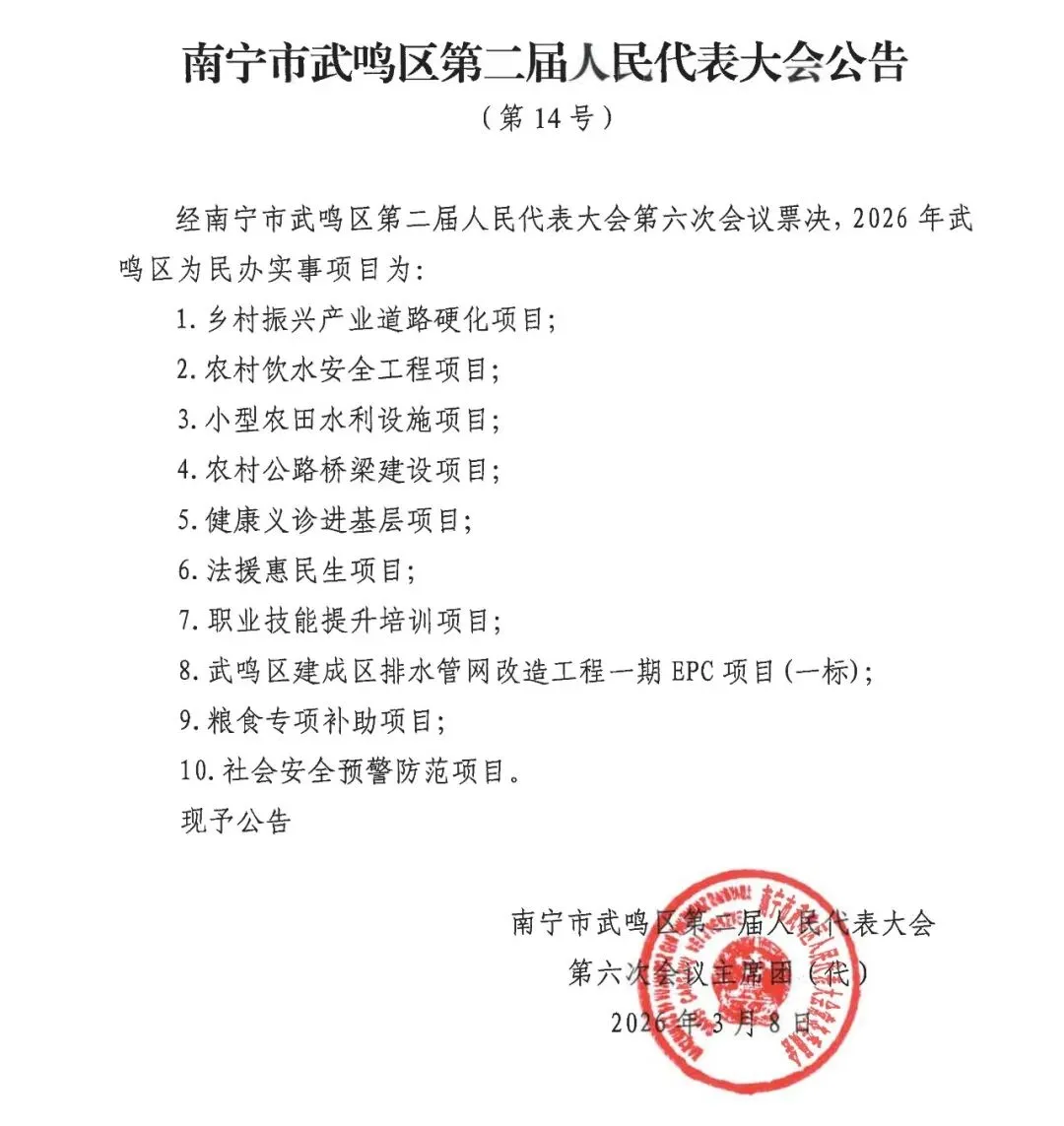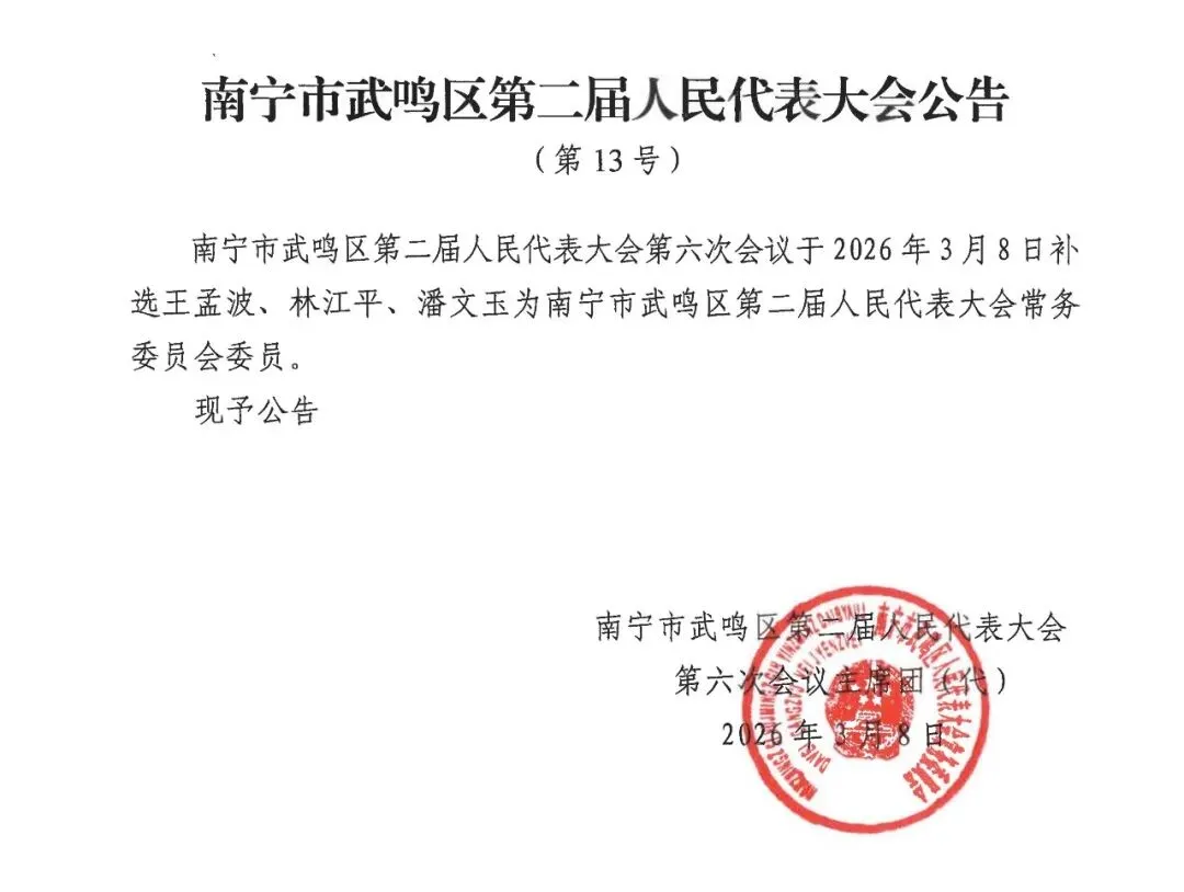 >南宁市武鸣区第二届人民代表大会公告(第12-14号)