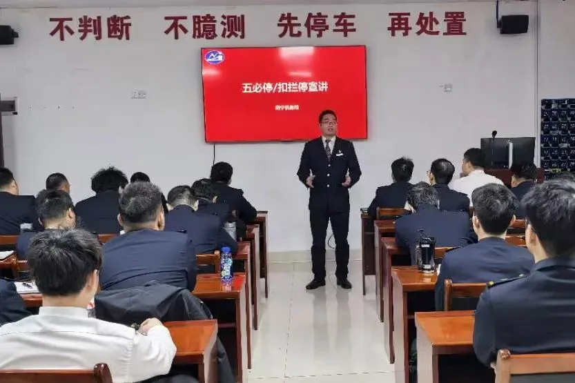 参加学习朗诵"五必停"内容,都让我深受警醒:安全无小事,规章是红线。客车行车关系重大,必须时刻绷紧安全弦。今后工作中,我将把"五必停"内化于心、外化于行,严格按标作业,坚决杜绝违章行为,以严谨细致的作风保障行车平稳有序,守护运输安全。