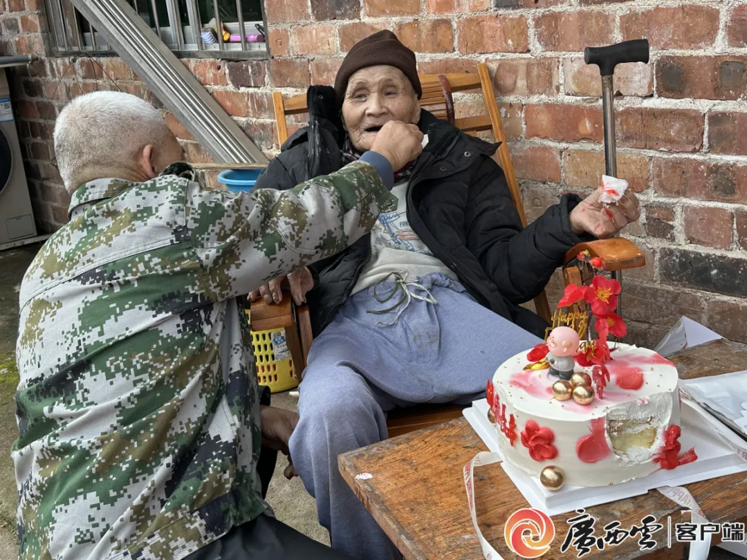 “2026年3月7日。”饭后,黄绍杨拿起笔,在一块干净的木板上郑重写下这个特殊的日期,轻轻递到岳父眼前,凑到老人耳边大声说道:“爷,今天是您100岁的生日!祝您百岁安康,福寿绵长!”韦树桃也端来一块寿糕,切成小块,喂到老人嘴里:“爹,吃块寿糕,祝你年年有今日。”