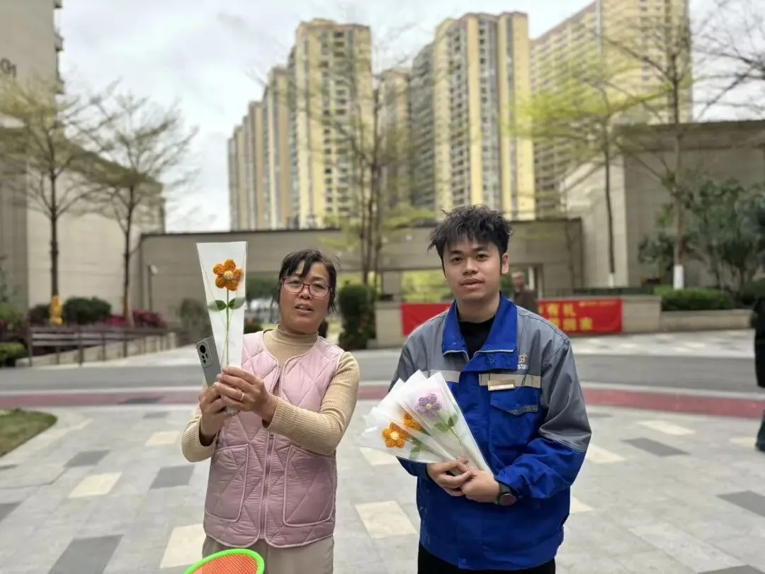 一支花,一份礼,一句“节日快乐”,是这个清晨最温柔的问候。有人驻足拍照,定格这一刻的明媚;有人浅浅一笑,笑意比花更动人。光影流转间,春日的园区因你们而格外美好。愿这份小小的惊喜,能温暖你一整天的奔赴。愿你如手中的花,柔软却有风骨,在属于自己的节奏里,不慌不忙,从容绽放。