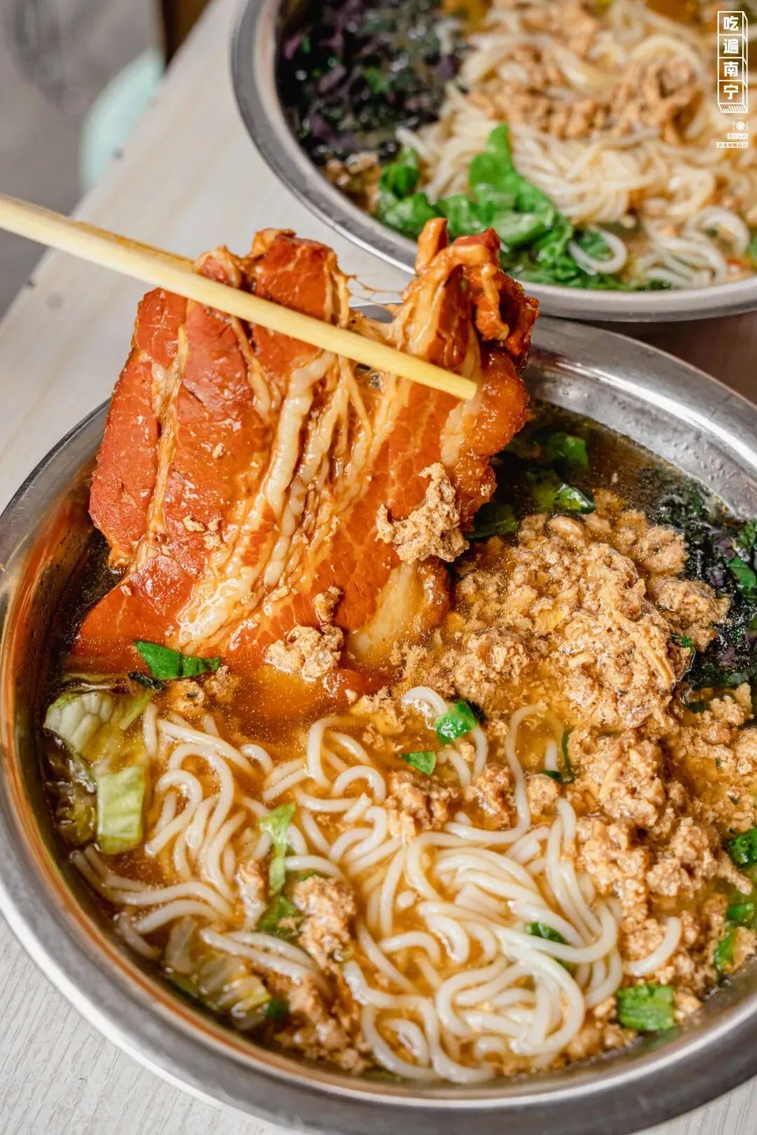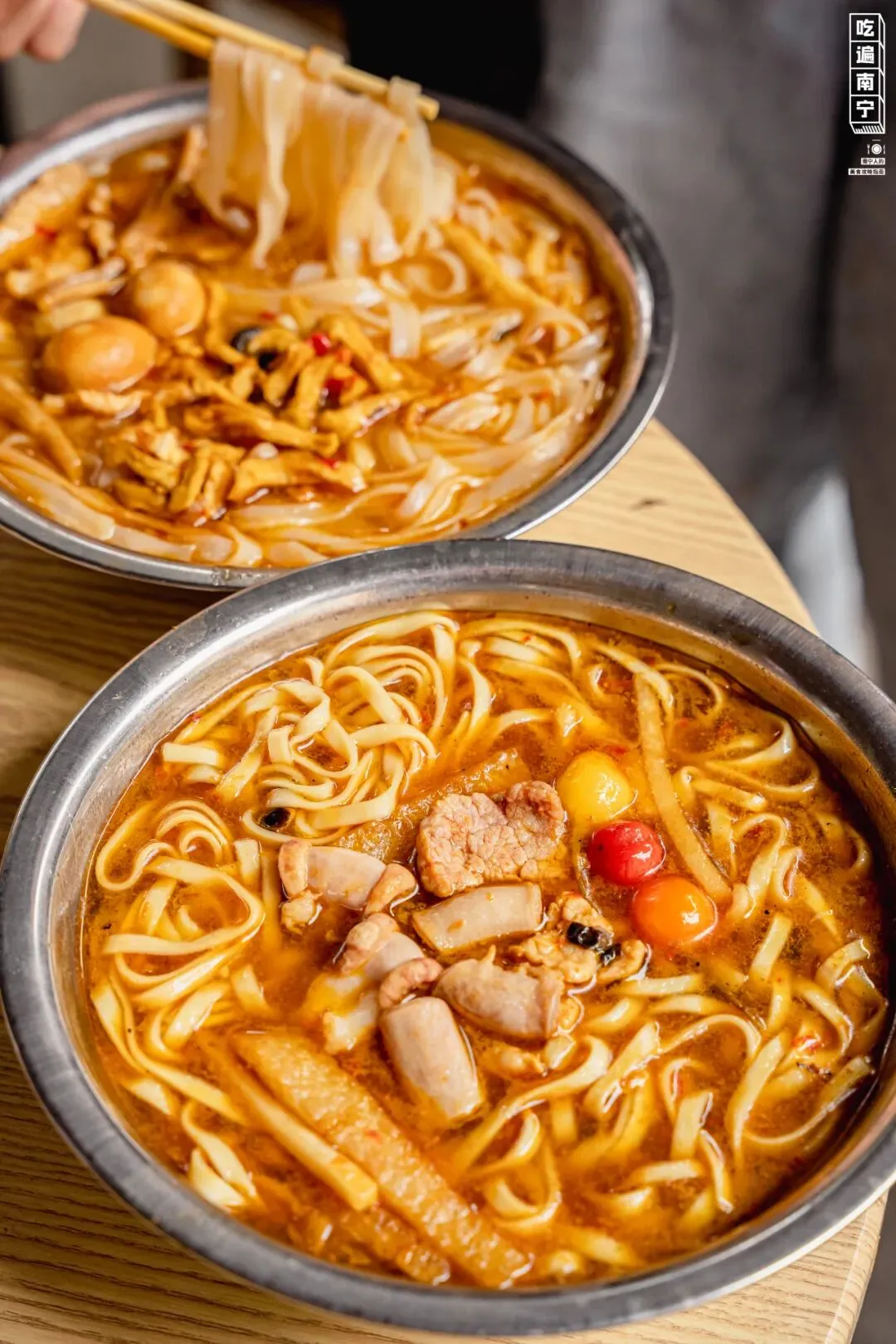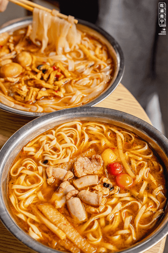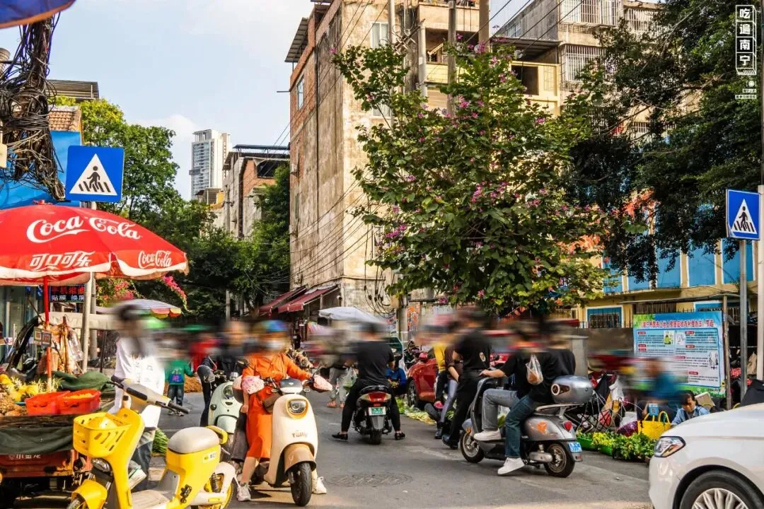 它是南宁著名的老街之一,紧挨着邕江边,有许多老南宁人的回忆,独享一份闹市中的悠闲。它也是南宁土著的美食自留地,从小吃到大的卷筒粉&小笼包、酸香的生榨、浓郁的老友粉、记忆中的古早奶茶……几十年的好吃老店,在这里随处可见。