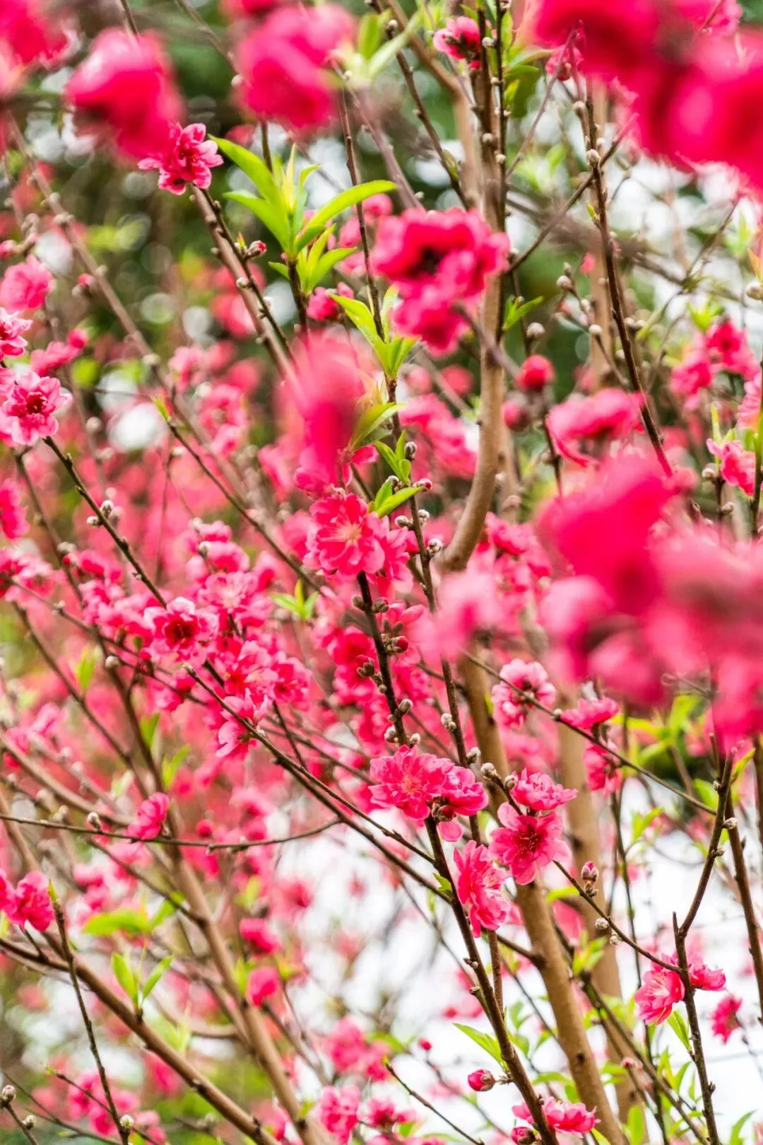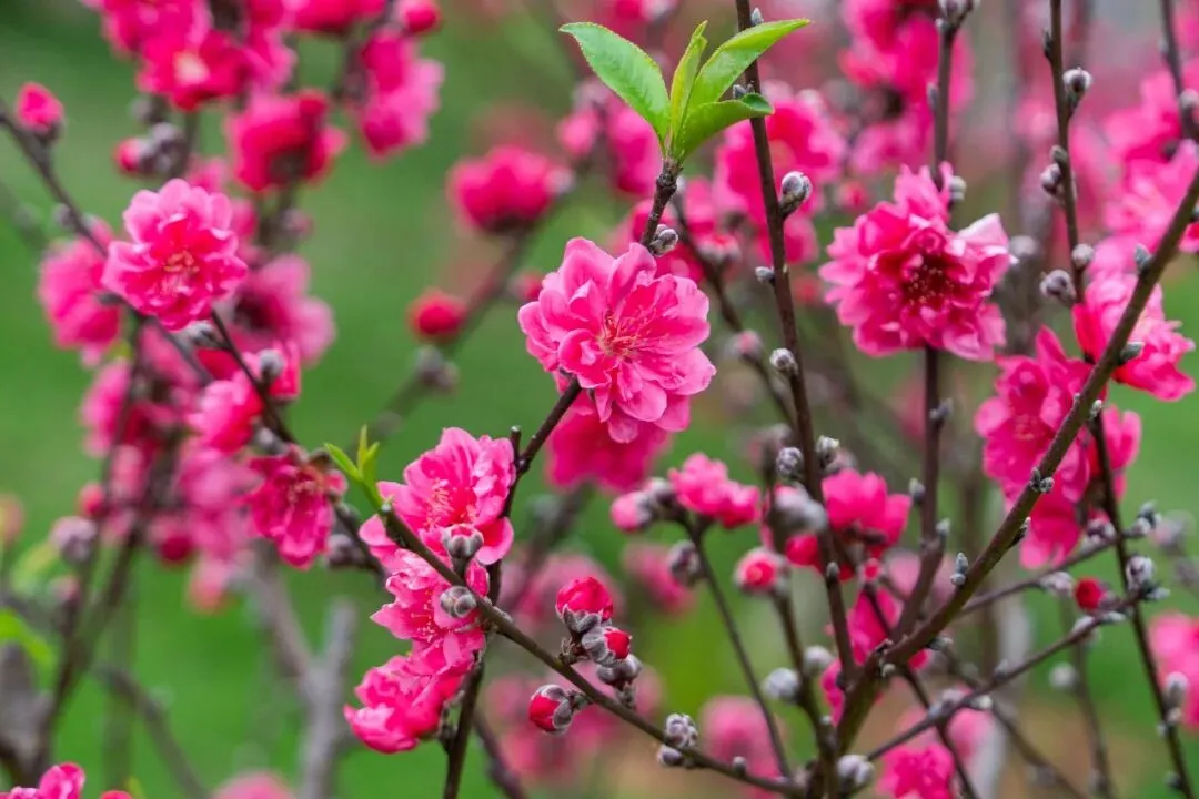 朵朵娇俏桃花簇拥成团