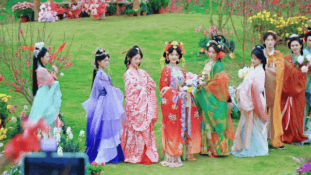 十二花神身着华服漫步于花海之间