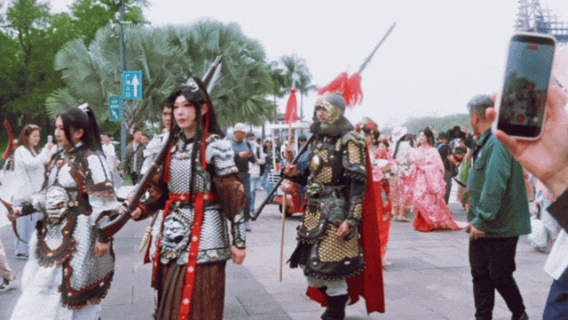 游人们纷纷停下脚步举起相机
