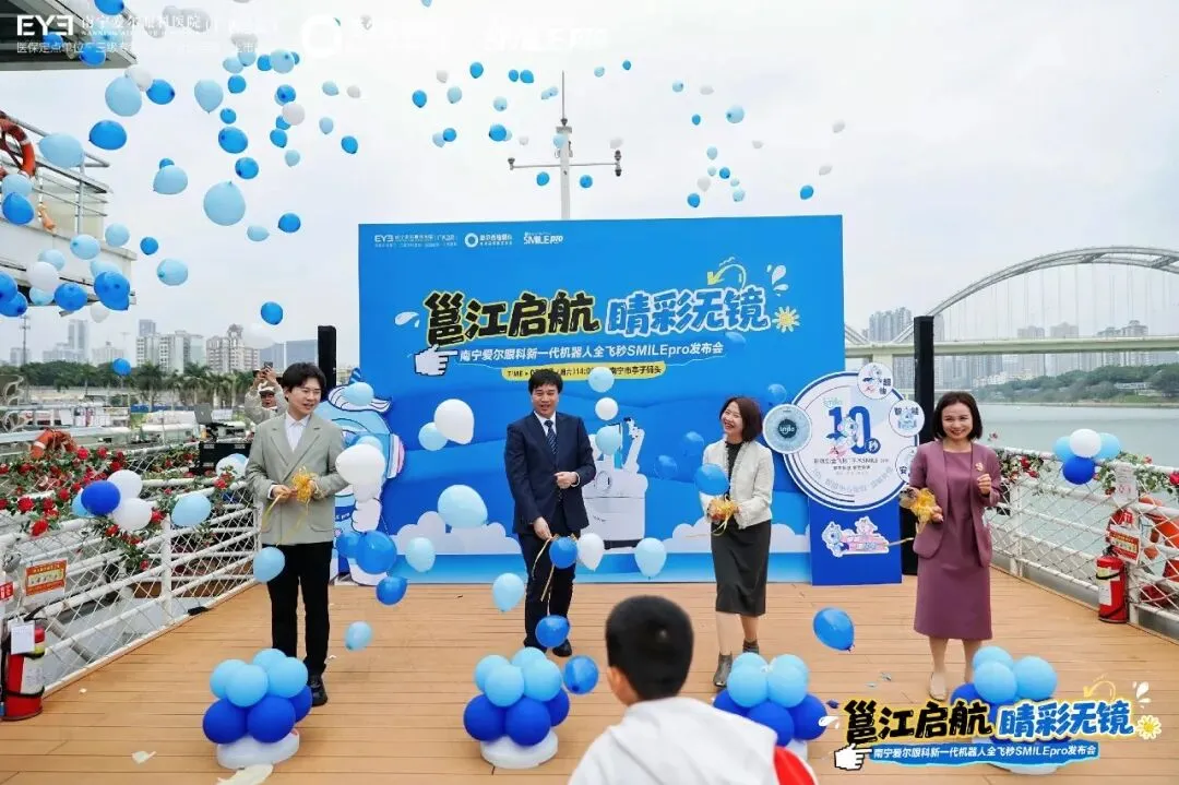 3月7日,由南宁爱尔眼科医院主办的“邕江启航·睛彩无镜”新一代机器人全飞秒SMILE pro发布会于亭子码头游轮盛大举行,宣告南宁屈光手术正式迈入“智能机器人辅助”的10秒极速新时代”,更彰显出南宁眼科技术的重大突破。