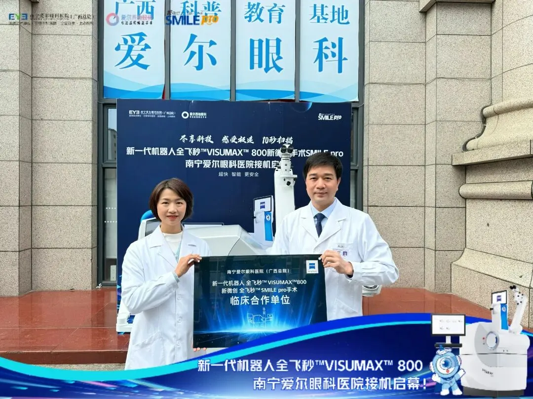 2026年1月,南宁爱尔眼科医院成功引进爱尔眼科广西首台新一代机器人全飞秒VISUMAX800设备,并顺利开展了首例全飞秒SMILE pro手术。发布会上,朱良勇副院长详细解读该技术的核心优势以及应用成果。