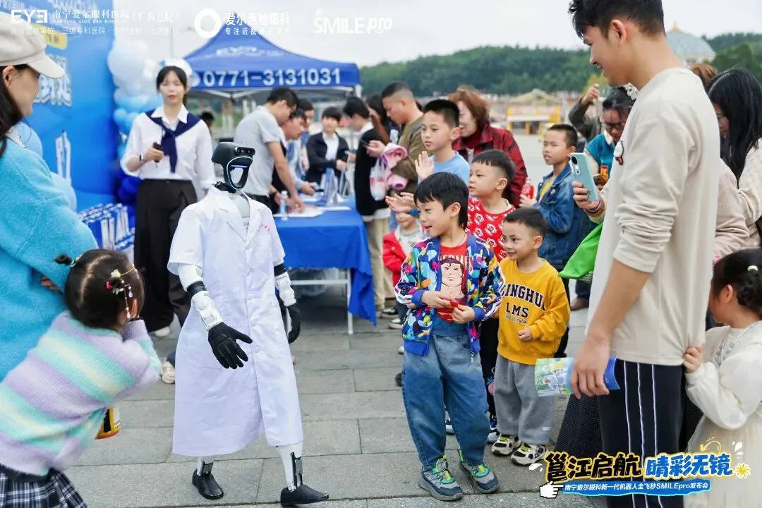 发布会现场不仅是前沿技术的展示平台,更是沉浸式科技体验空间。宇树科技智能机器人与机械狗化身专业“智能导诊员”,重磅亮相南宁爱尔眼科医院及活动现场。依托领先的运动控制算法,精准完成导诊引导、路径指引等服务场景,让现场观众直观感受“医疗+机器人”跨界融合的创新魅力。