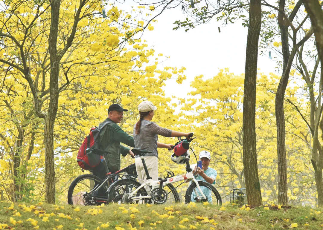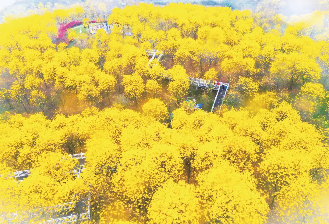 黄花风铃园花开如海、美不胜收。记者潘浩 摄
