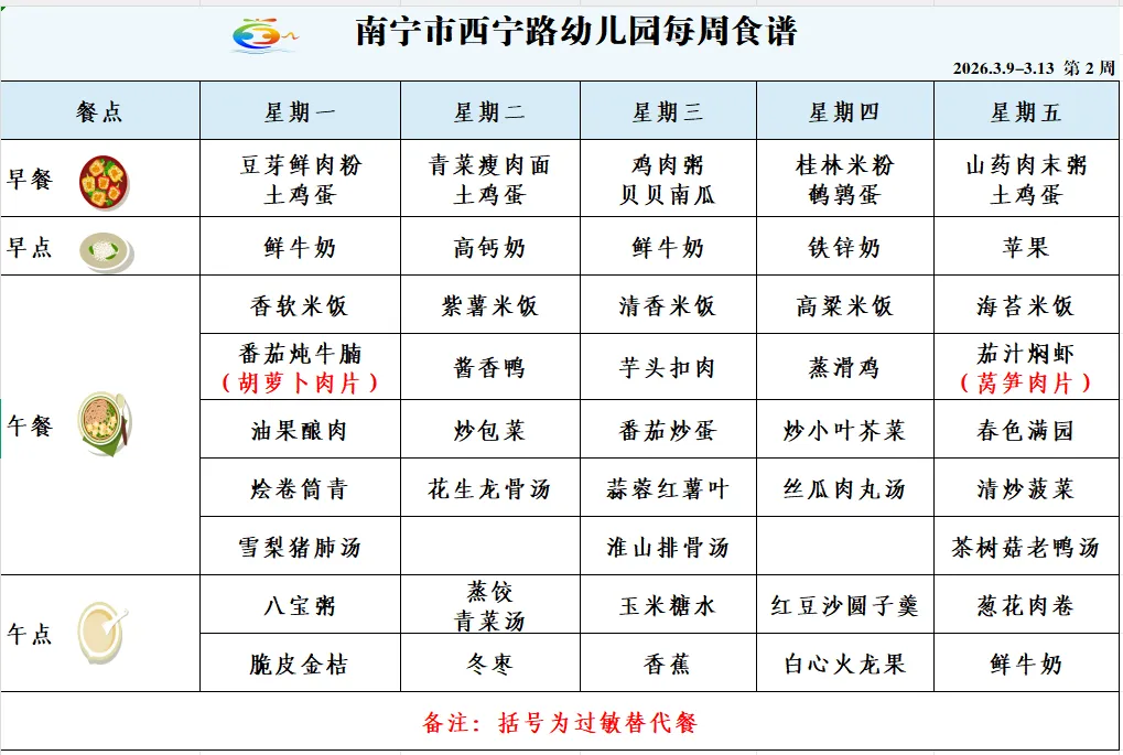 本周幼儿园食谱新鲜出炉啦~