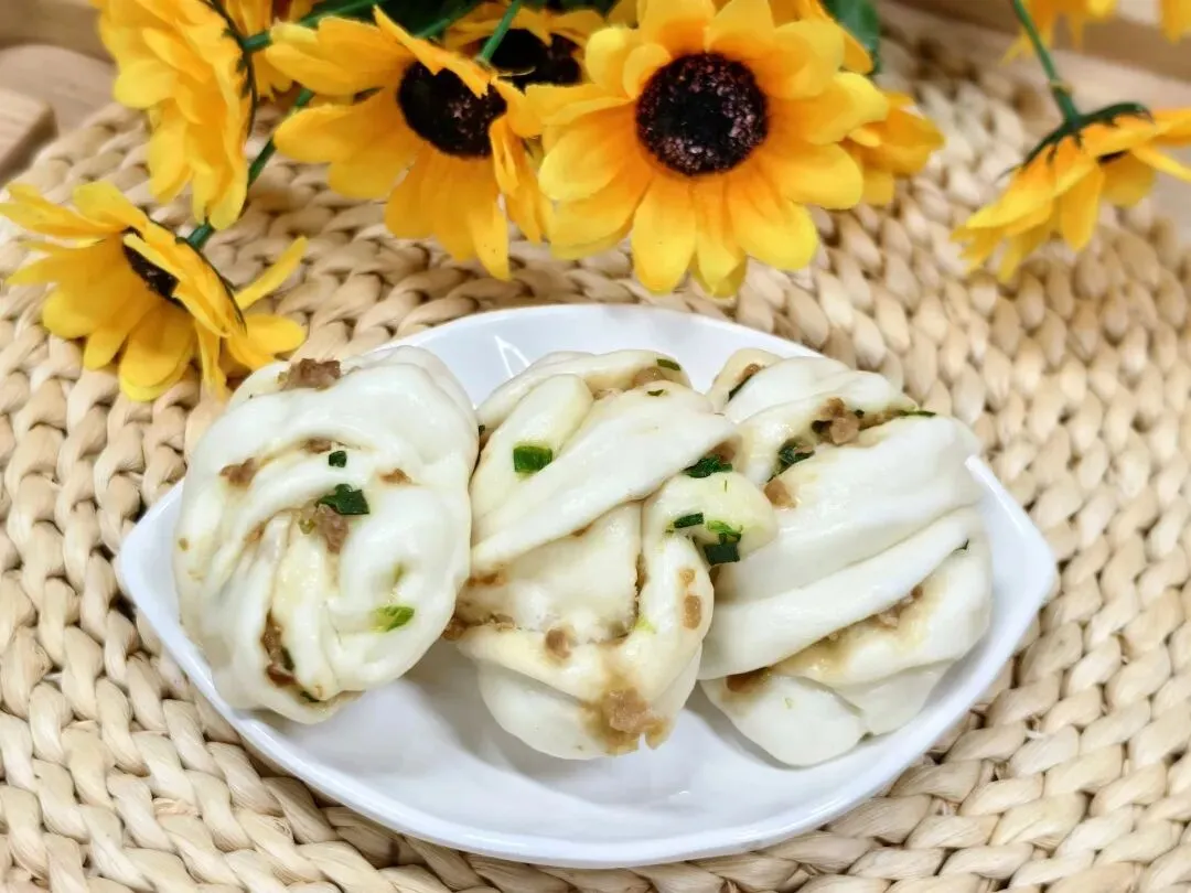 葱花肉卷、鲜牛奶