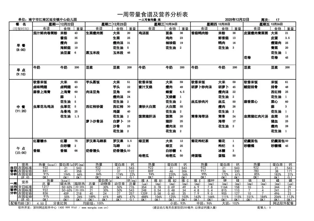 亲爱的家长朋友们,幼儿的健康成长离不开科学营养的饮食搭配!我园每周精心定制的带量食谱已新鲜出炉,每一餐都严格遵循幼儿营养需求,精选当季新鲜食材,合理搭配蛋白质、维生素、膳食纤维等营养元素,确保宝贝们吃得健康、吃得开心!