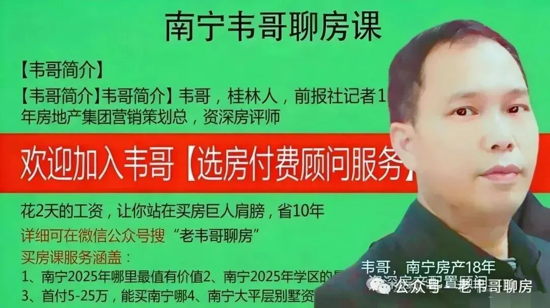 购房陪跑服务,只需1-2天的工资,只限今天报名的,不到400元,就可请一位资深的18年房地产顾问人士给你的家庭资产优化配置保驾护航!(转款后即可获得价值828元选房工具包5件套一份+(意向房源价格合理性测算分析)专项服务一项+综合买房指导服务(含市区免费接送)+房主急卖捡漏群,后有详细介绍。另外,为回馈您的信任,让您花小钱有所值,不仅收回了成本,还能获取惊喜礼包!即成功通过我公司资格买房后即可获取价值2488元的【专业验房+美画美家书法挂画】福利套餐一份,现场兑现,详细见后。哪些房地产企业不能碰?哪些楼盘不能碰?楼盘的售价是否虚高会花冤枉钱?买房人遇到最多的问题是哪些?哪些是最容易犯的坑?二手房交易最容易出问题的风险点在哪里?都能事前给你提醒与预判!关键时候能帮你及时规避损失。微信转账报名后,1、我们会将价值828元的房产资料《南宁2025年买房避坑手册》、《南宁2025年楼市上半年报行情摘要(内部版)》、《南宁2025年选房及房价地图》、《2025年南宁主要楼盘优缺点分析》等5份资料发给你。如果你很希望在南宁找到合适自己而且性价比高的房子,我是做了18年房地产的南宁老韦哥,此前1980元的顾问陪跑服务,今天报名加入的按398元(只限今天),可以获得我们以上介绍的陪跑服务了。并可以进入我们的【VIP捡漏交流群】里,有房主急卖的房源及买房人之间的经验之谈,可以在群里交流买房心得,可以扫码加入。