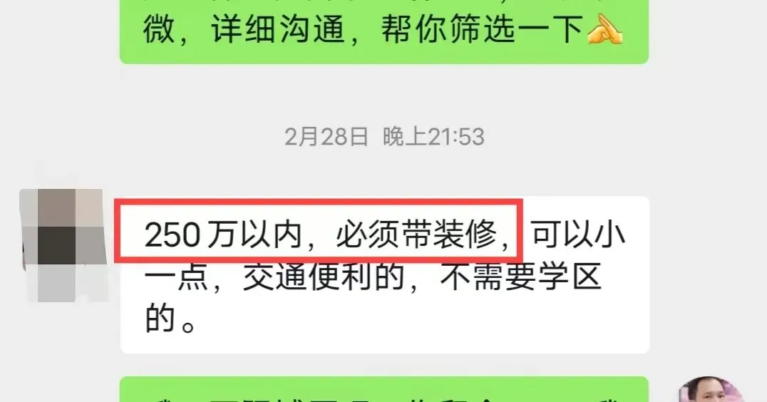 这些是部分朋友的需求举例,其实还有很多,都在问二手精装别墅房源……甚至有些朋友直接付顾问费要求优先筛选别墅房源及进急卖群的,但是韦哥还是希望大家,最主要是先理清自己的核心需求哦。