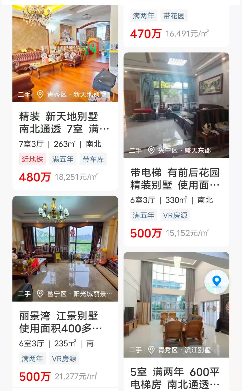 下面是中介平台上挂的“市场价别墅”: