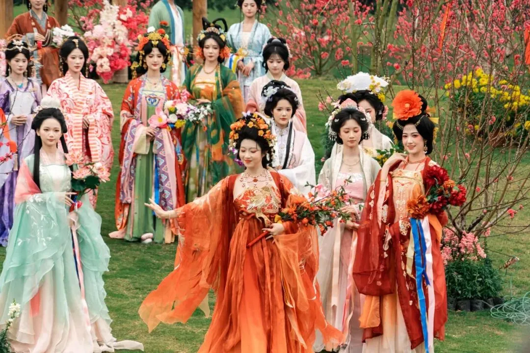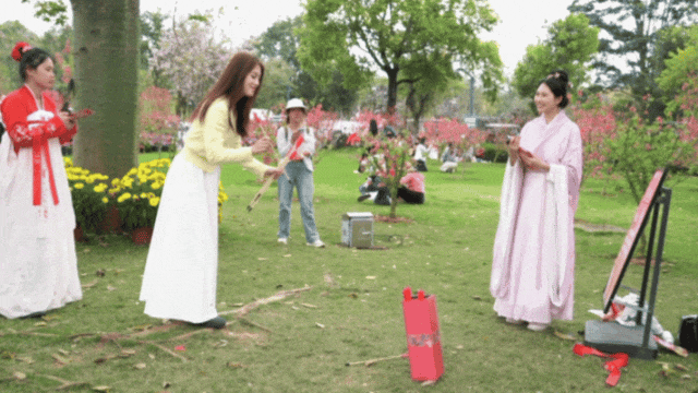 现场的朋友们还能近距离参与互动接受美食投喂与簪花祝福